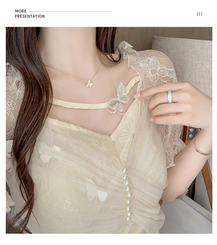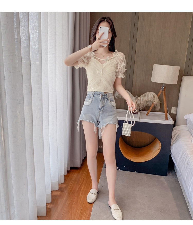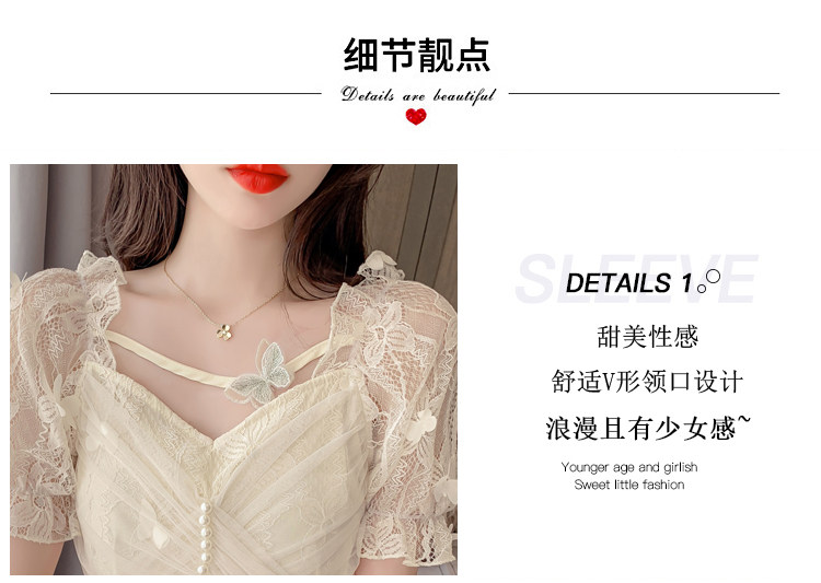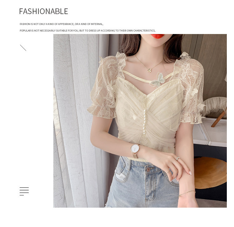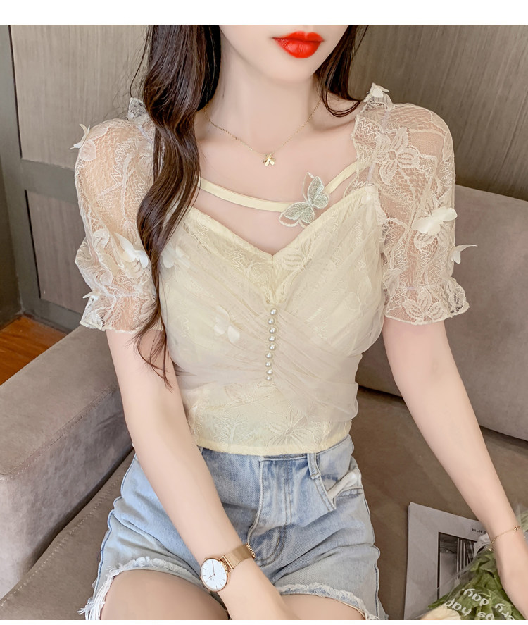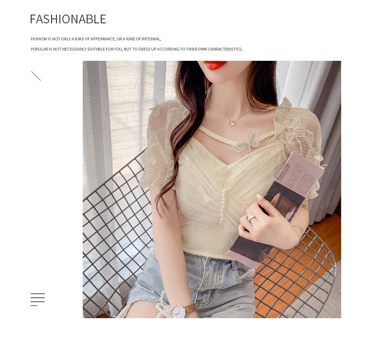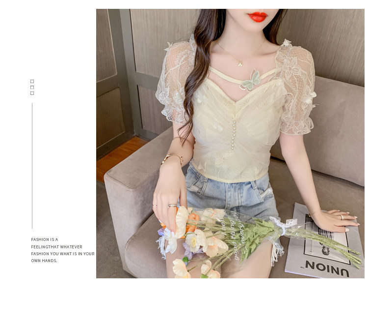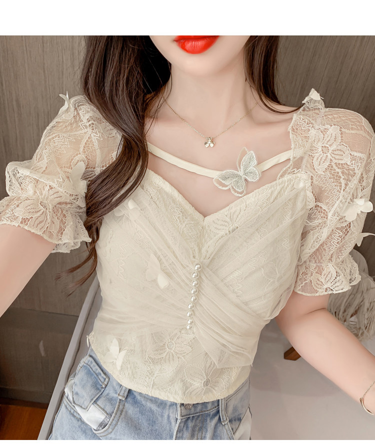Дизайнерская шифоновая кружевная короткая летняя рубашка с бантиком, тренд сезона, французский стиль