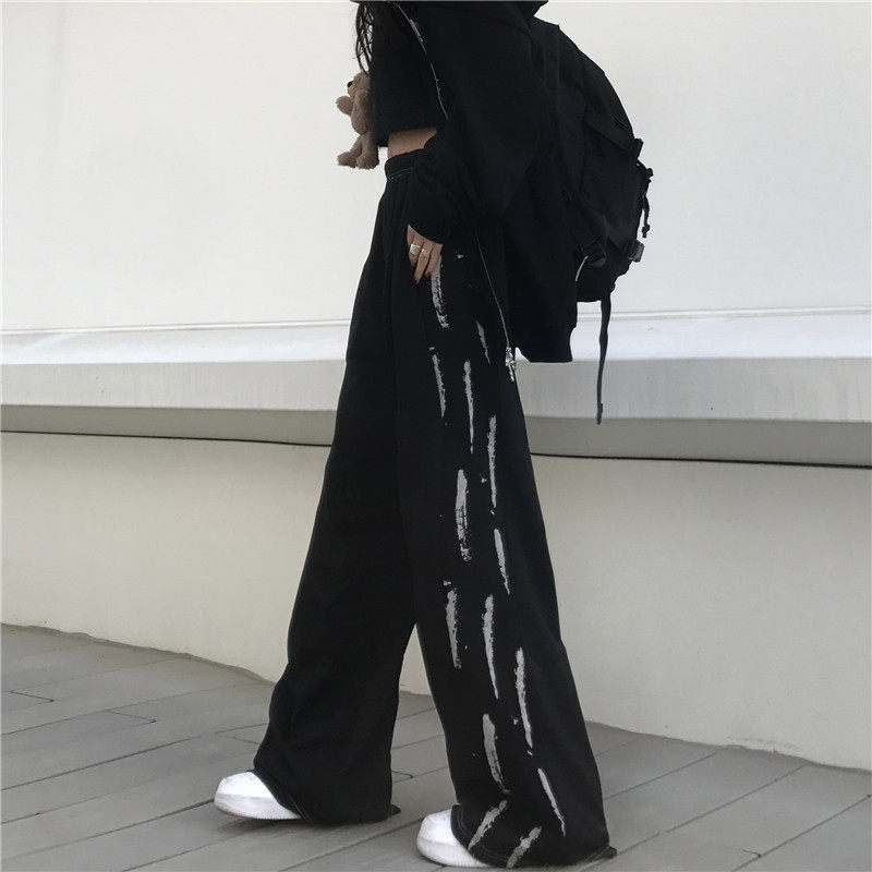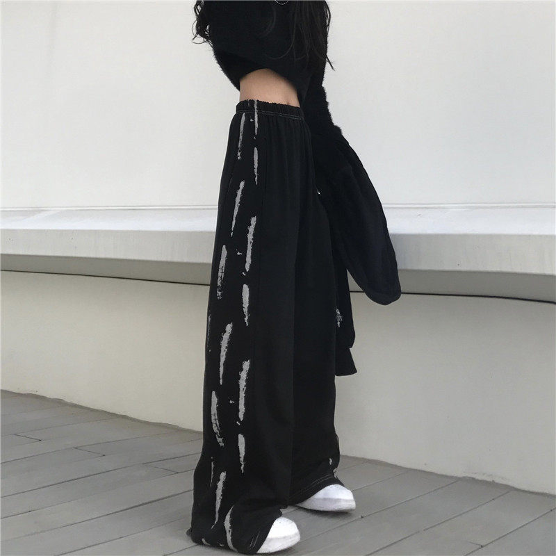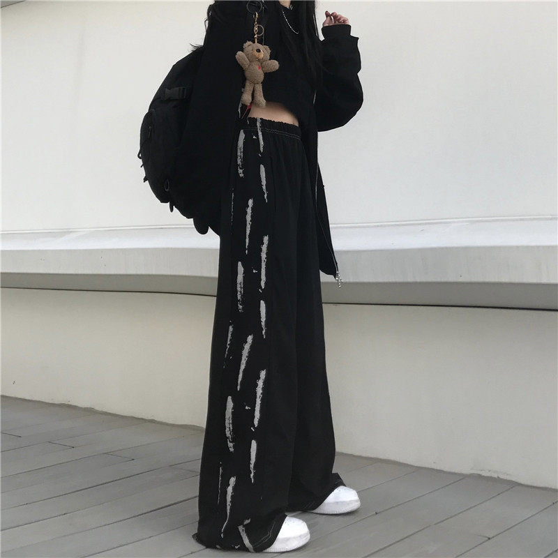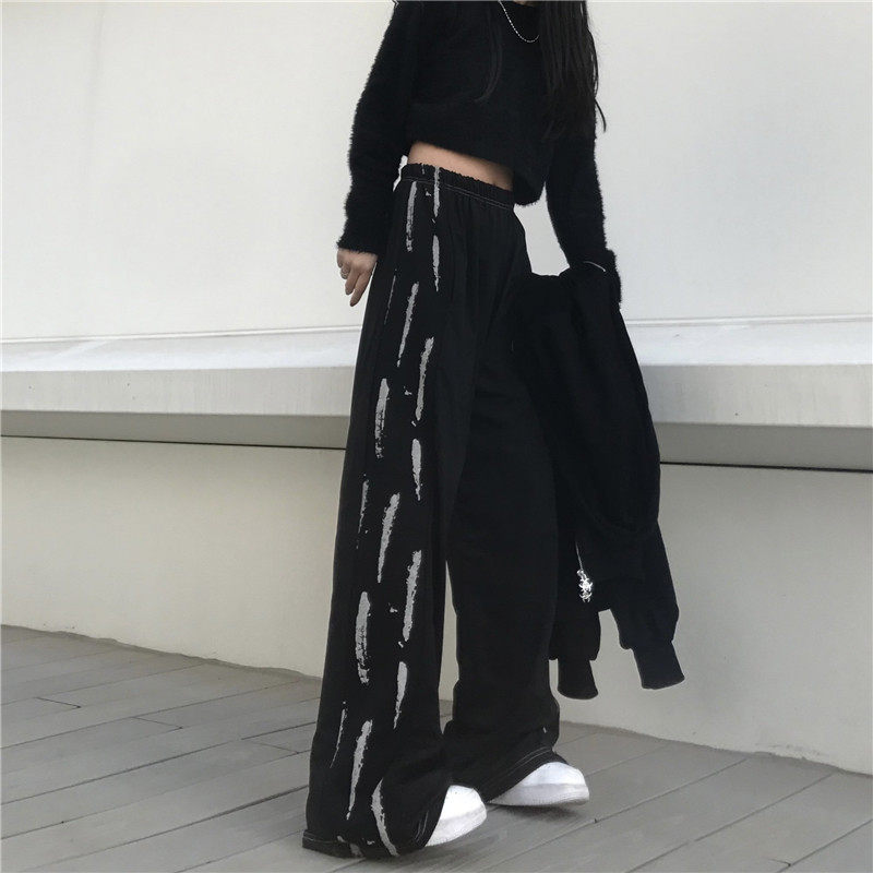 Черные цветные летние брендовые штаны, тонкие повседневные брюки, высокая талия, в корейском стиле, свободный прямой крой