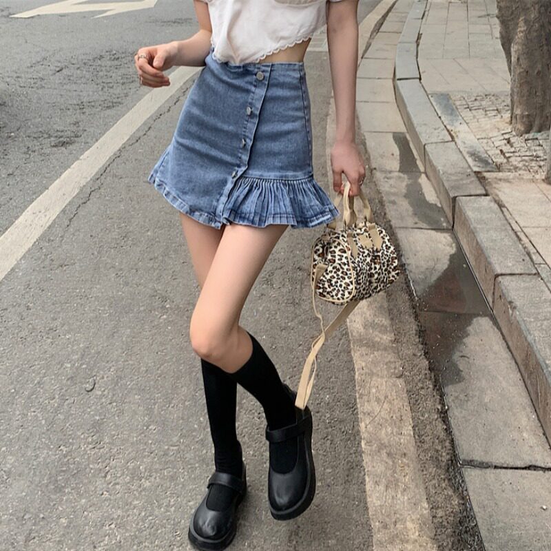 Летнее защитное белье, джинсовая юбка, 2021 года, А-силуэт, высокая талия