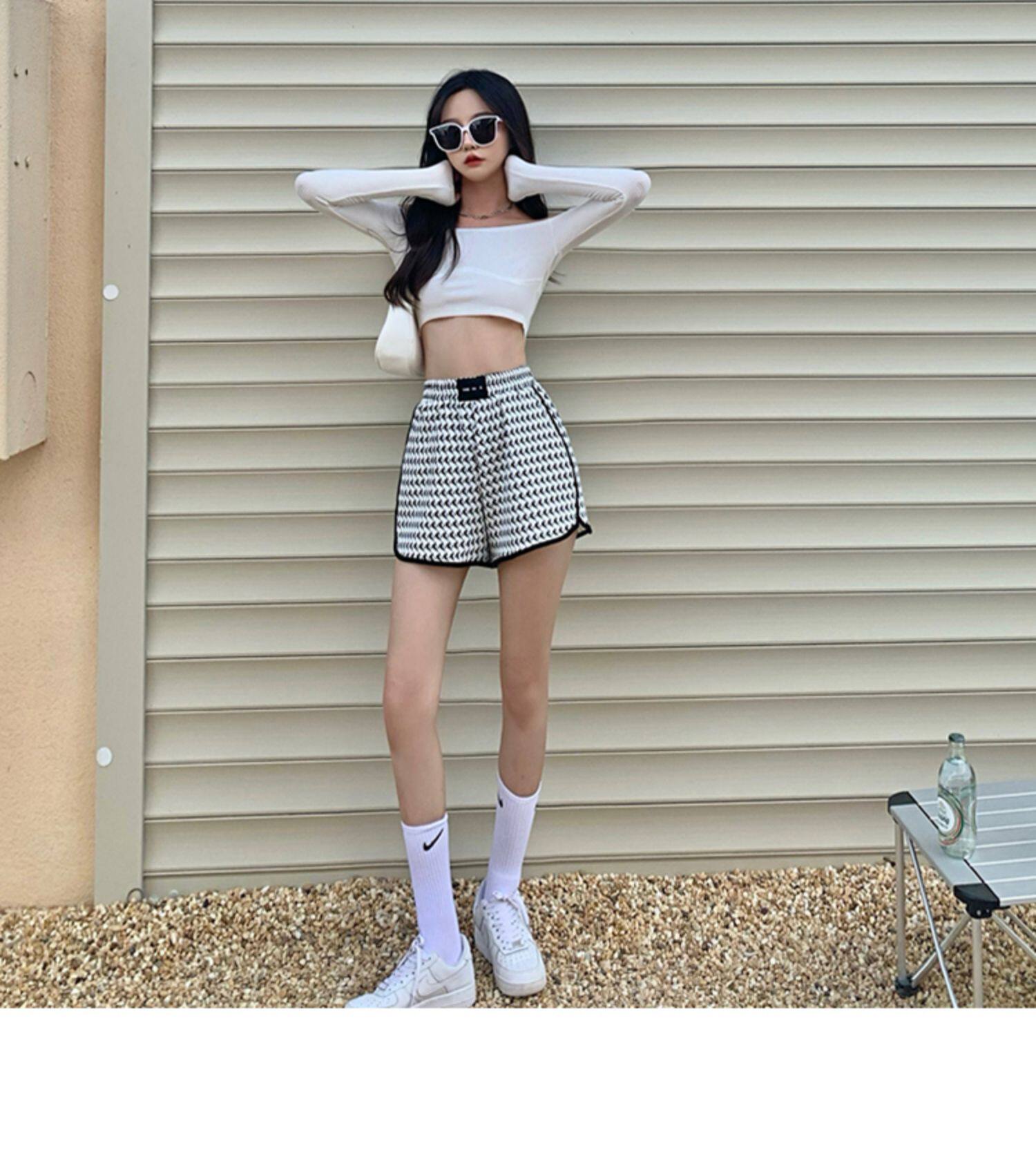 Шорты, тонкие белые штаны, популярно в интернете, высокая талия, подходят для подростков
