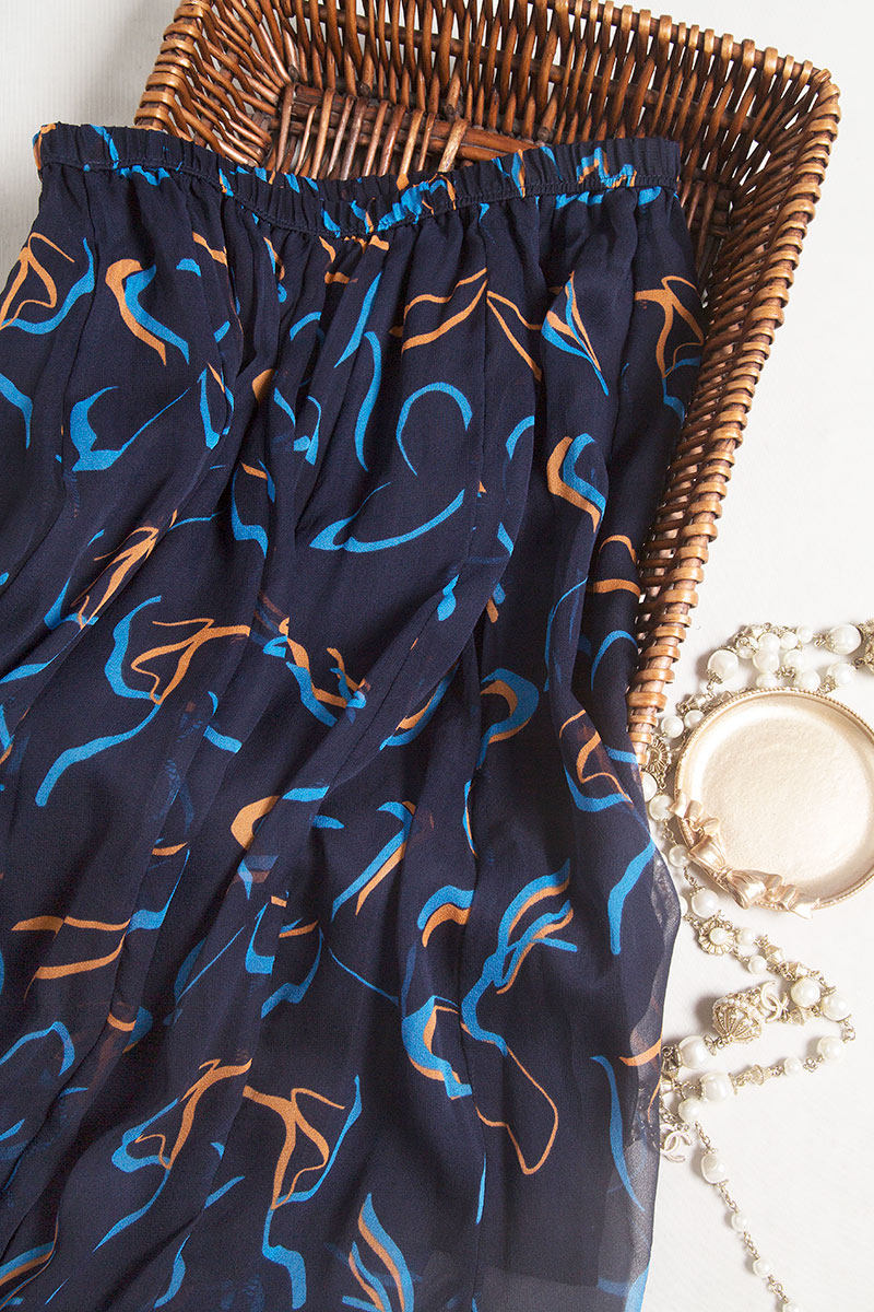 Ретро шелковая длинная юбка, французский ретро стиль, высокая талия, по фигуре, средней длины