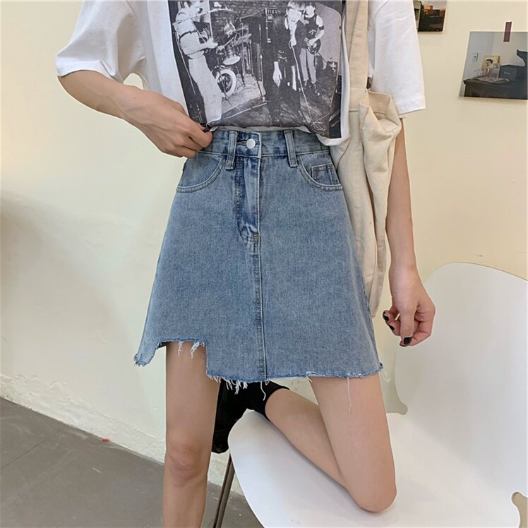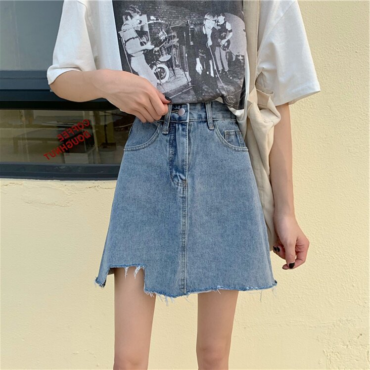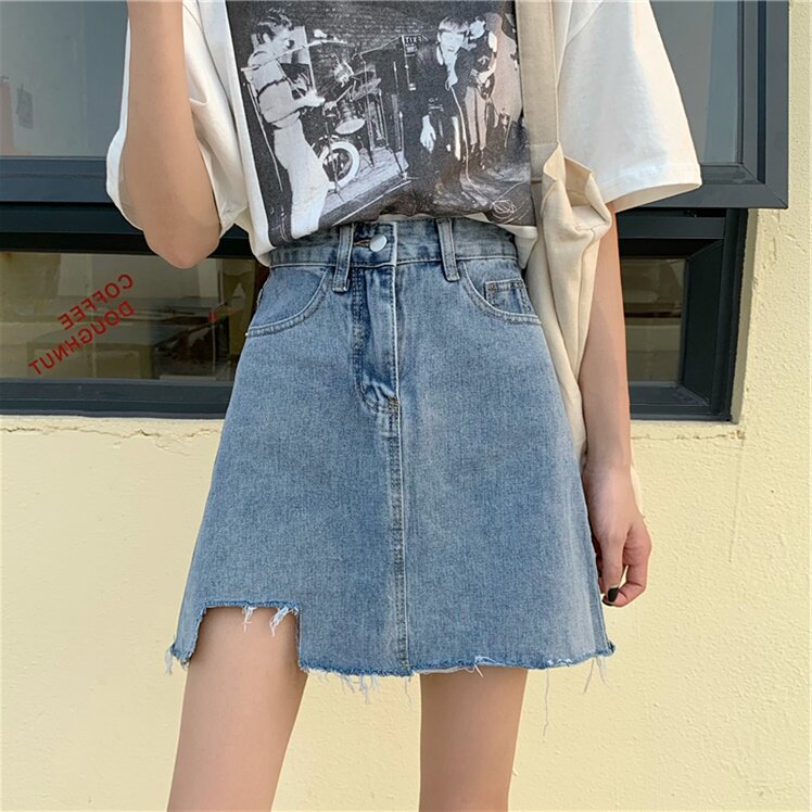 Джинсовая юбка, высокая талия, большой размер, с акцентом на бедрах
