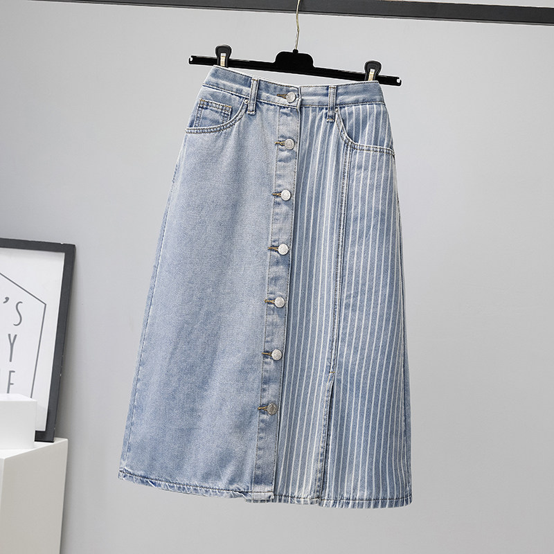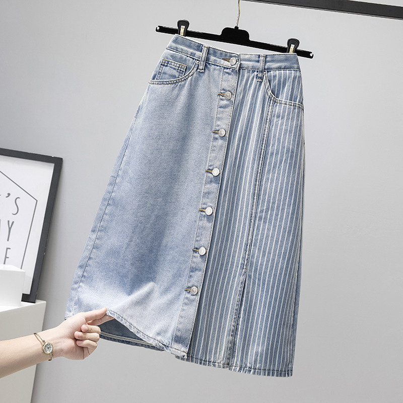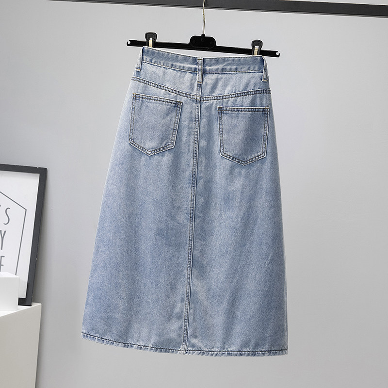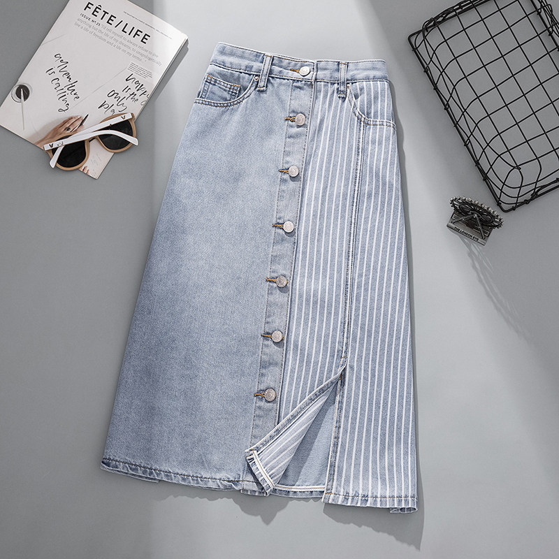 Летняя тонкая длинная джинсовая юбка, 2024 года, А-силуэт, с акцентом на бедрах