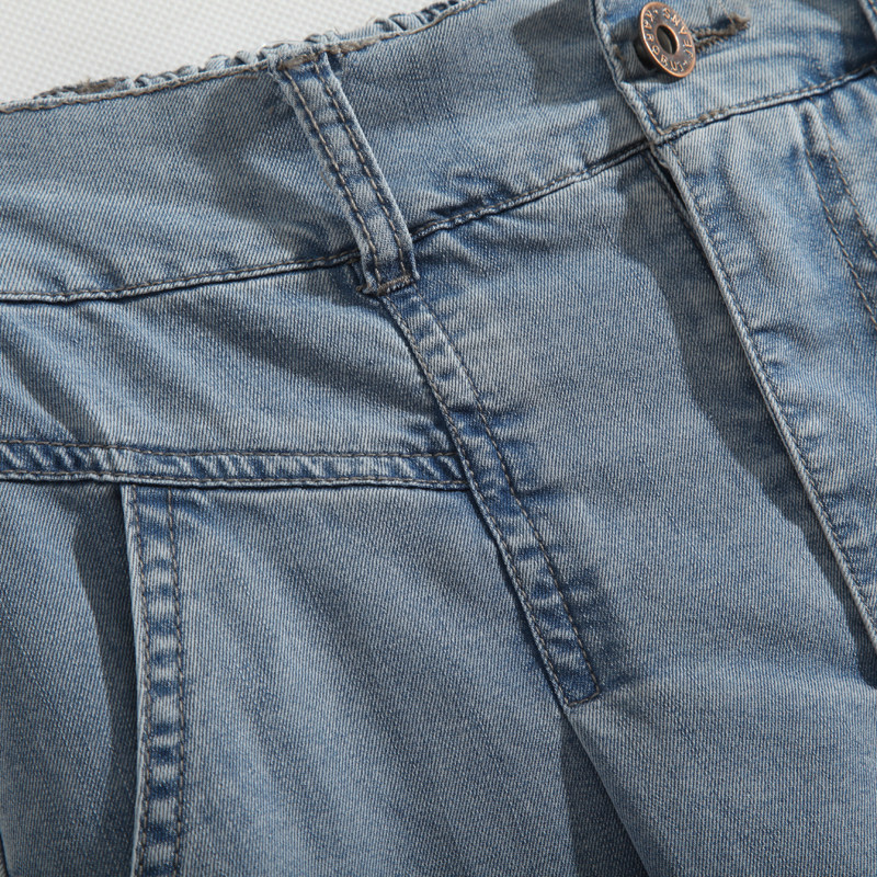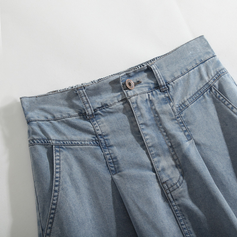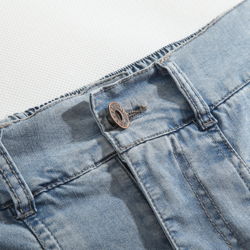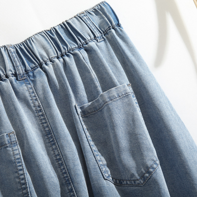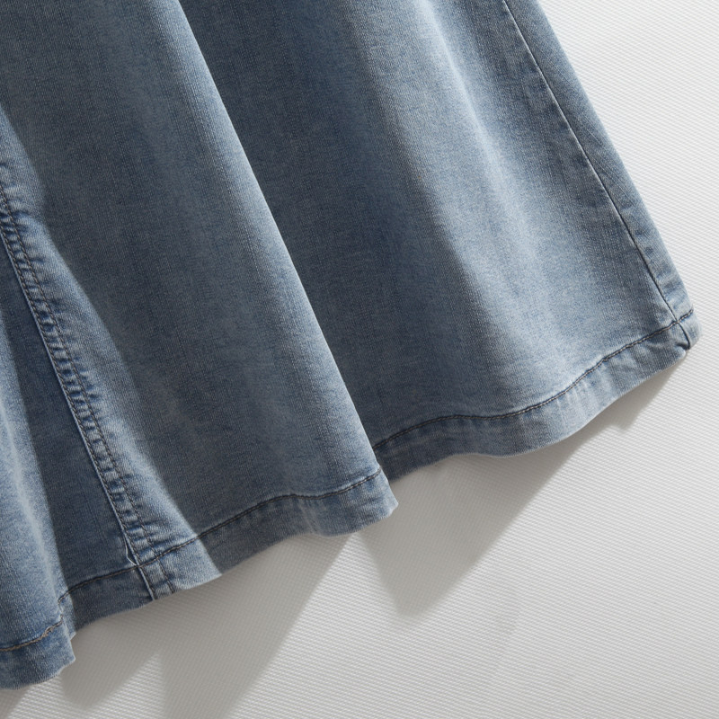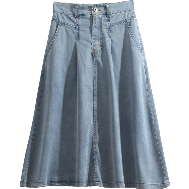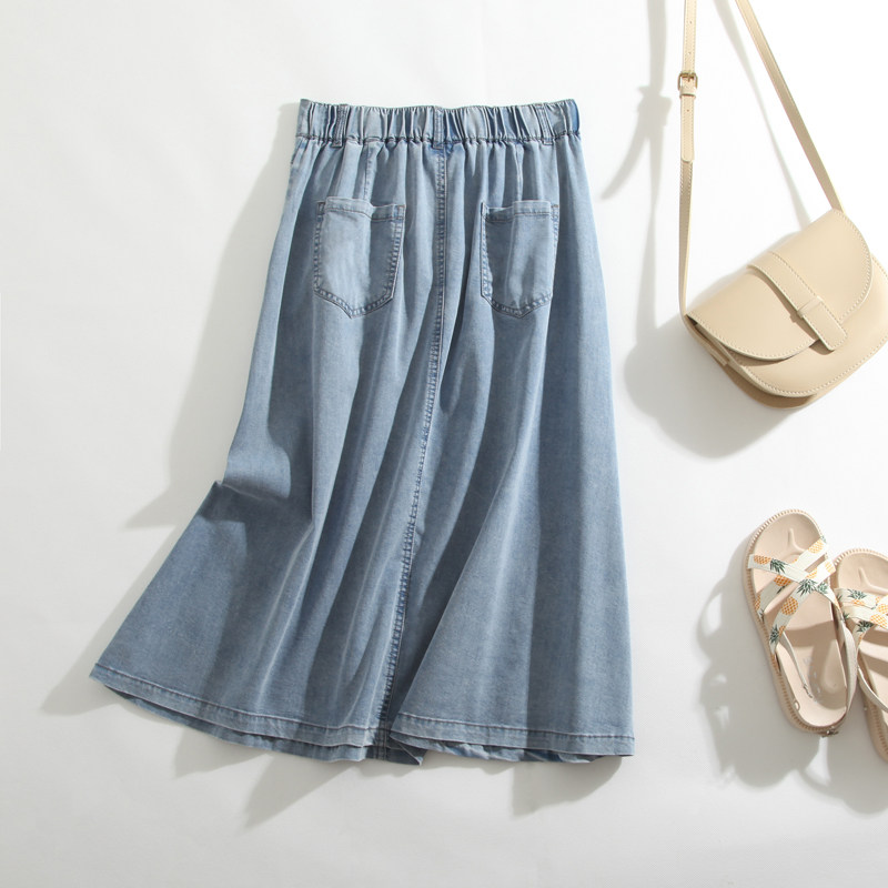 Летняя эластичная джинсовая юбка, средней длины, высокая талия, А-силуэт