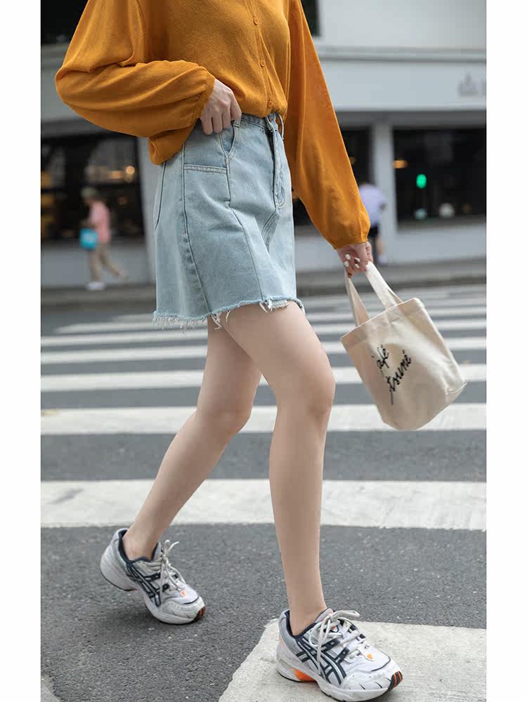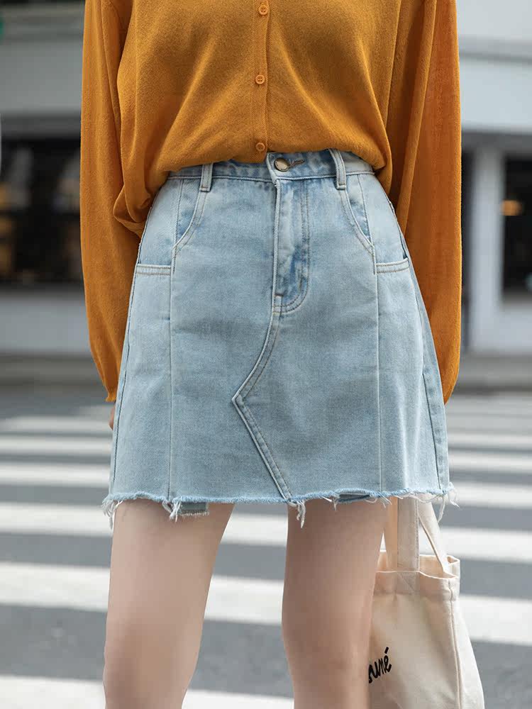 Летняя джинсовая юбка, тонкая мини-юбка, высокая талия, А-силуэт, популярно в интернете