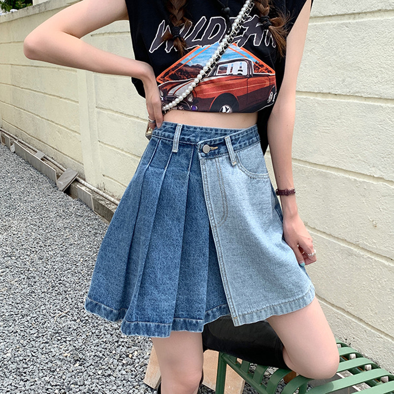 Дизайнерская осенняя джинсовая юбка, мини-юбка, тренд сезона, А-силуэт
