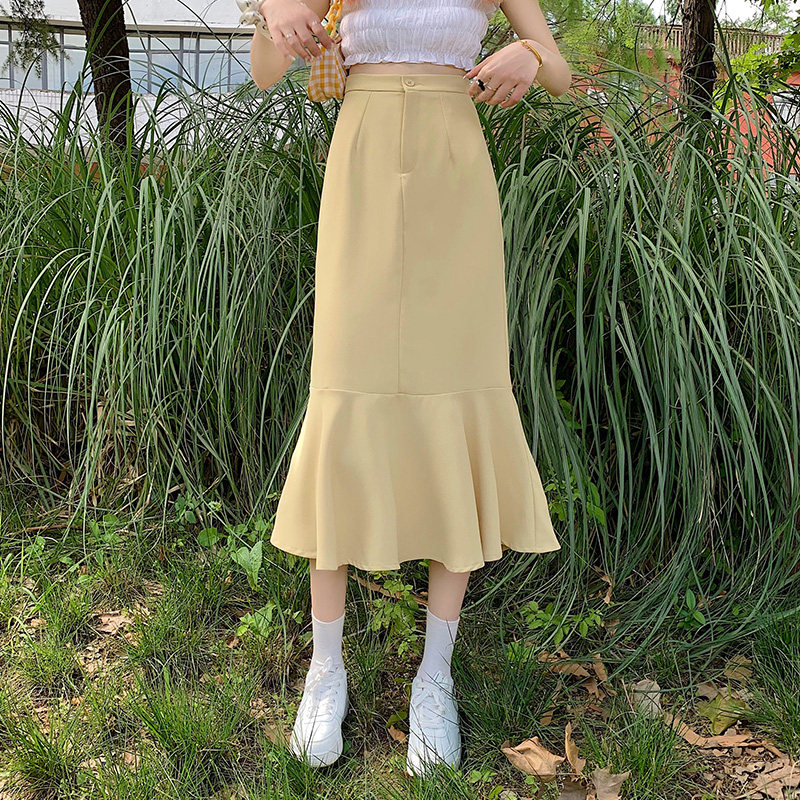 Осенняя приталенная длинная юбка, коллекция 2021, высокая талия, средней длины, А-силуэт, рыбий хвост