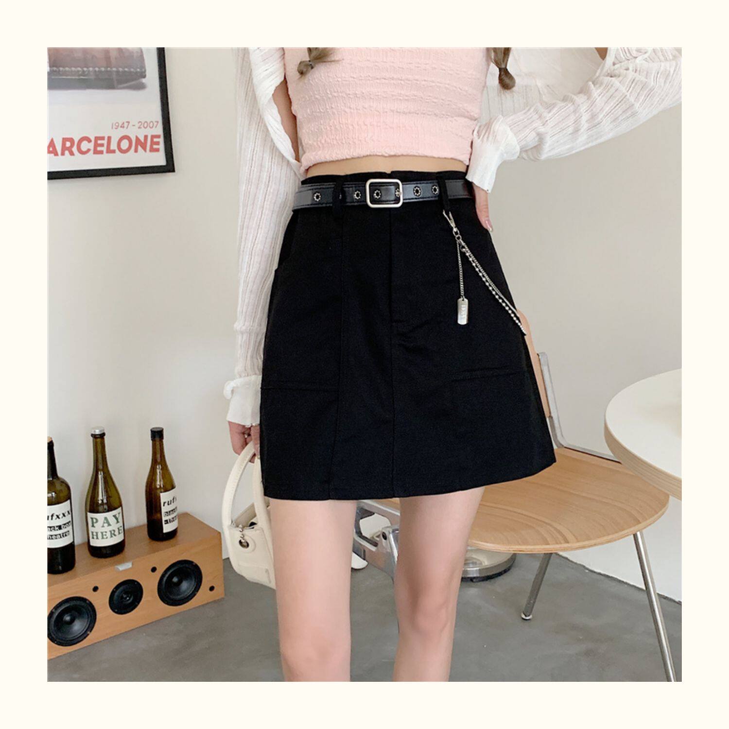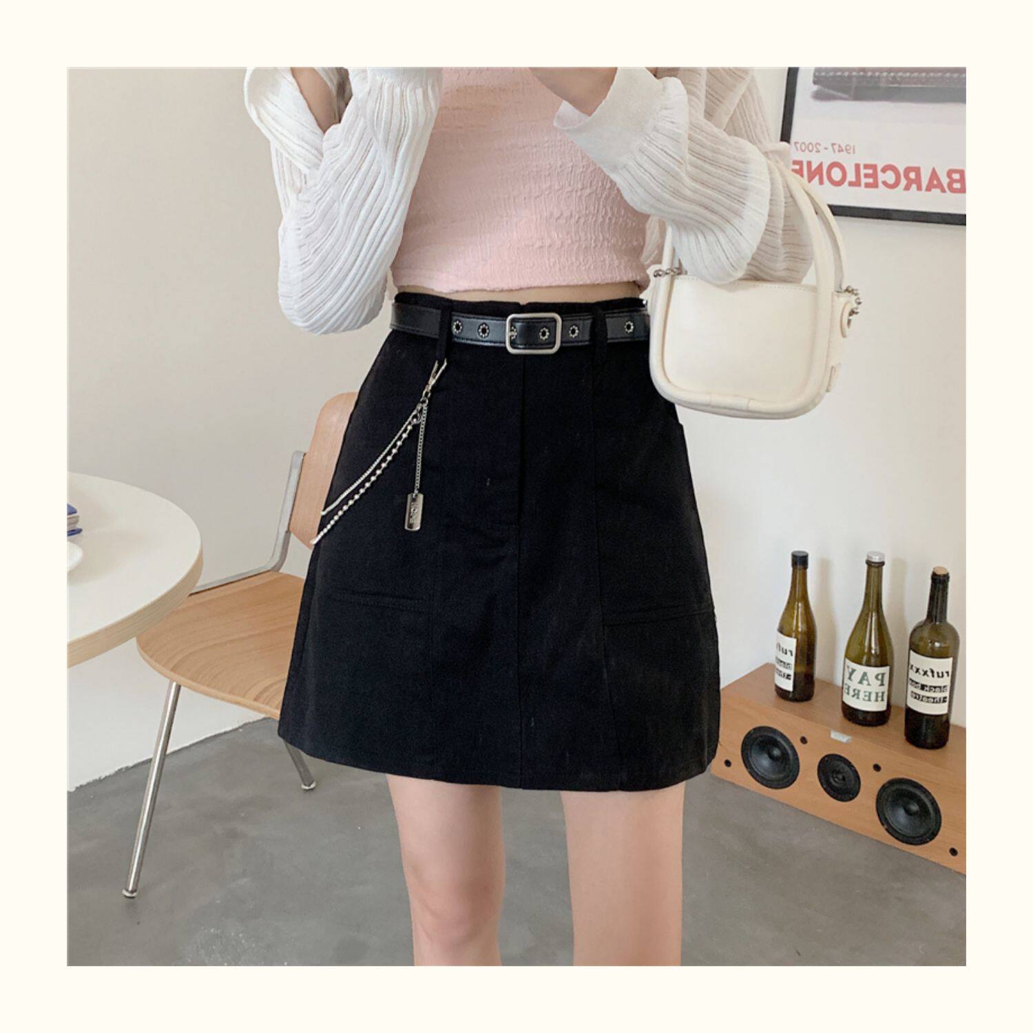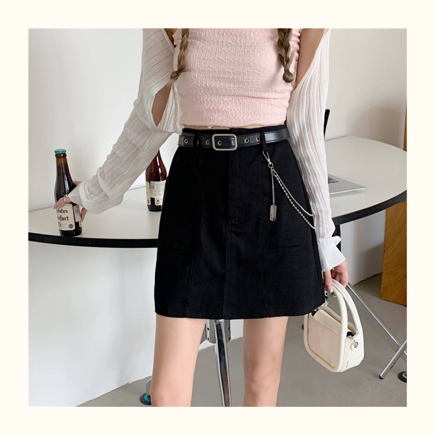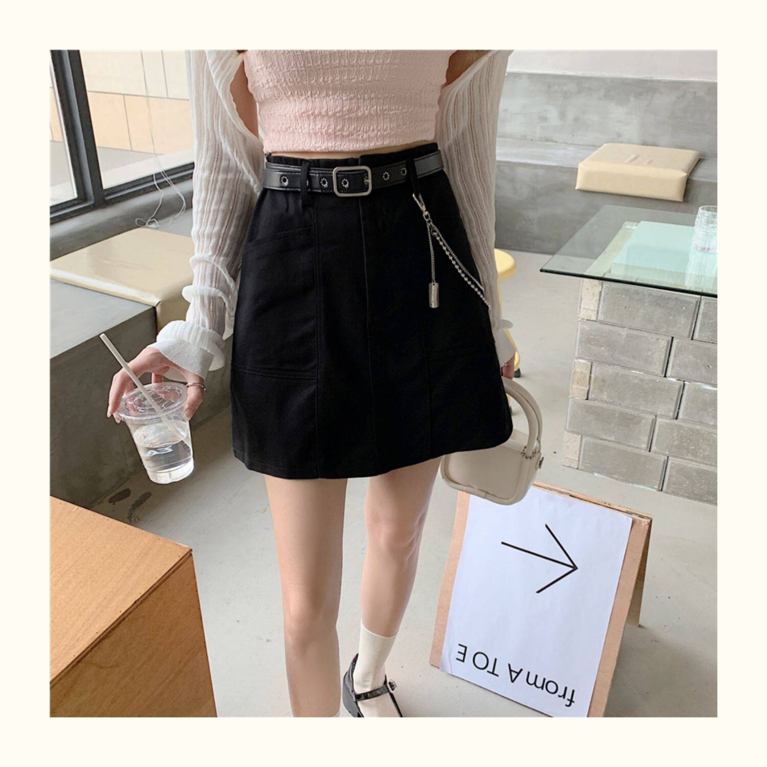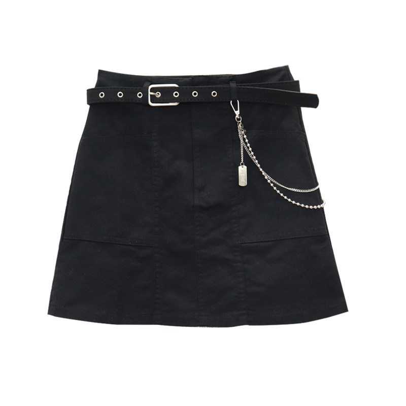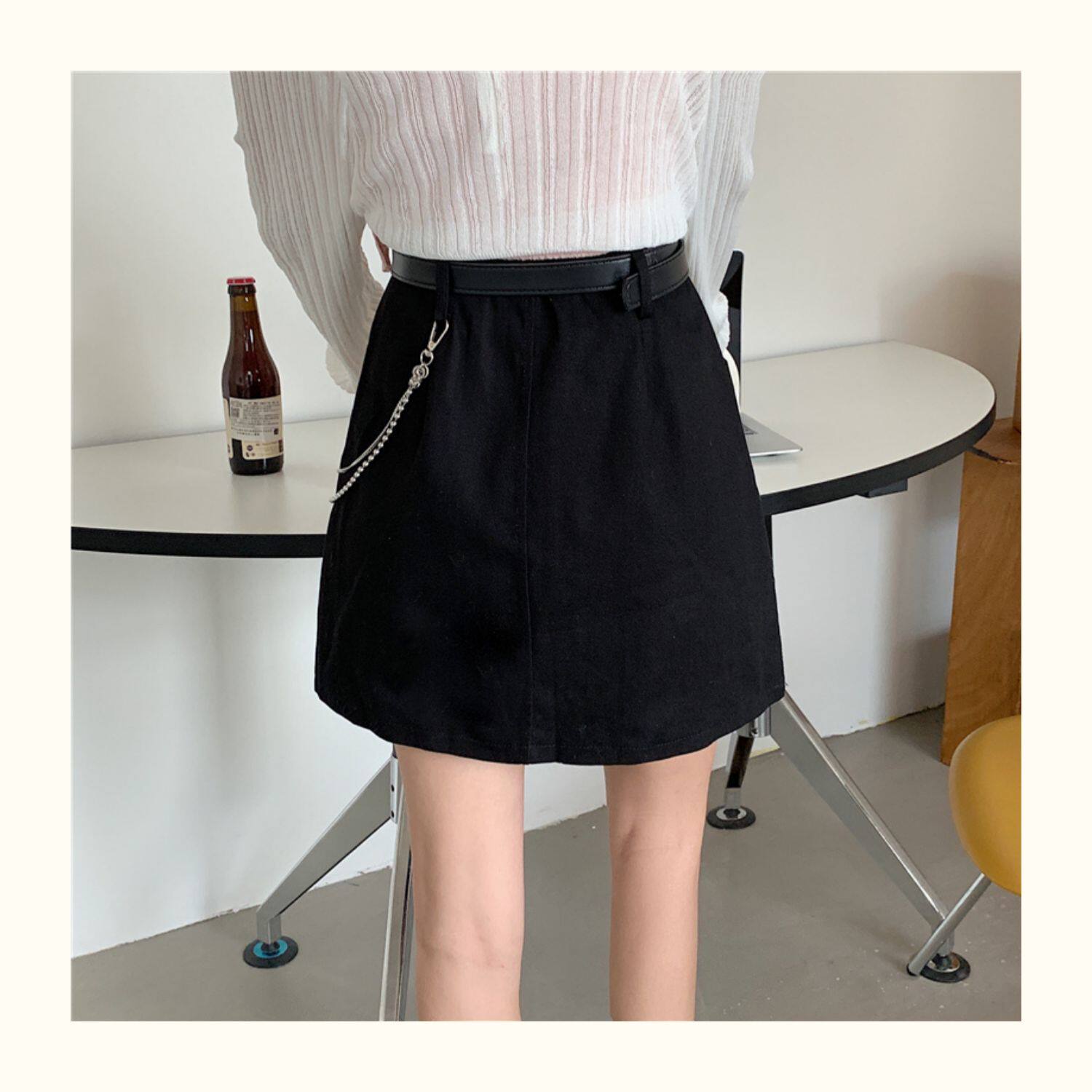 Приталенная джинсовая юбка, брендовая универсальная цепь, мини-юбка, высокая талия, А-силуэт, большой размер
