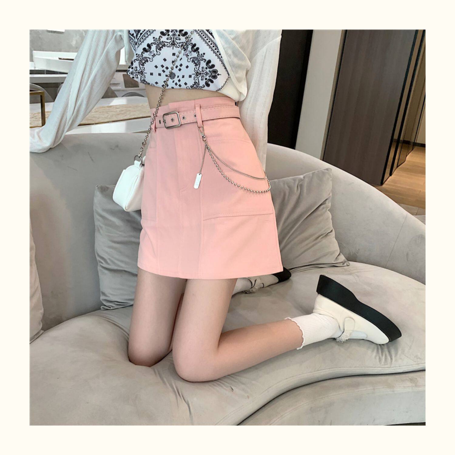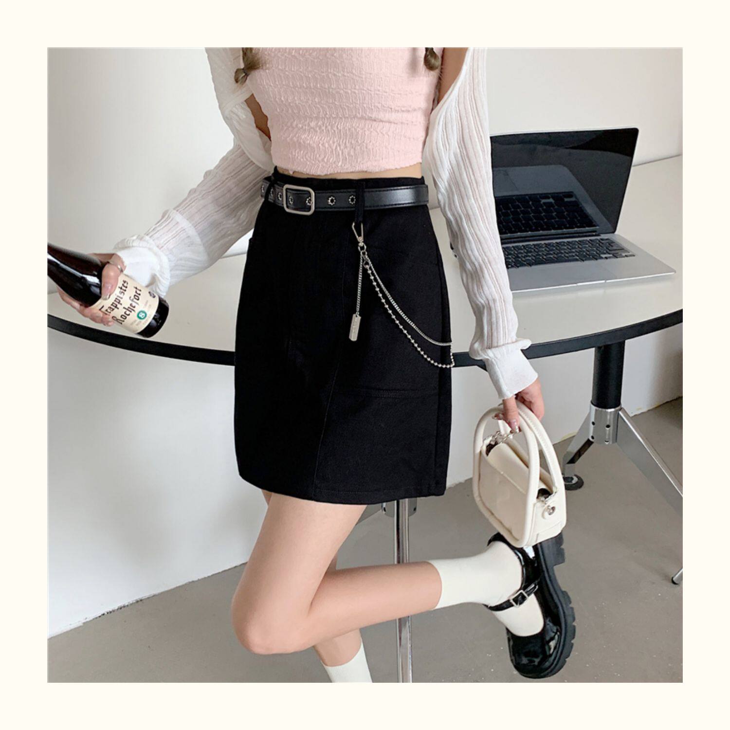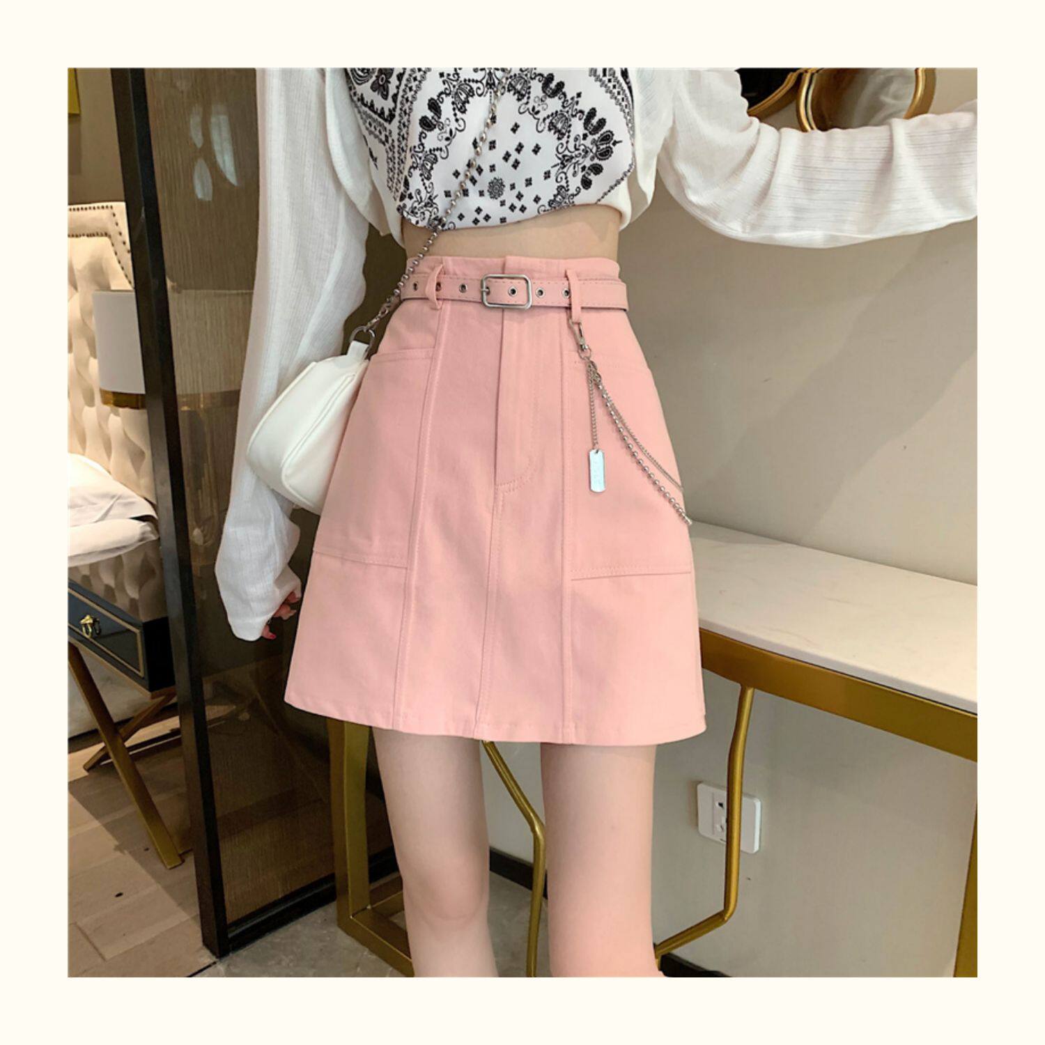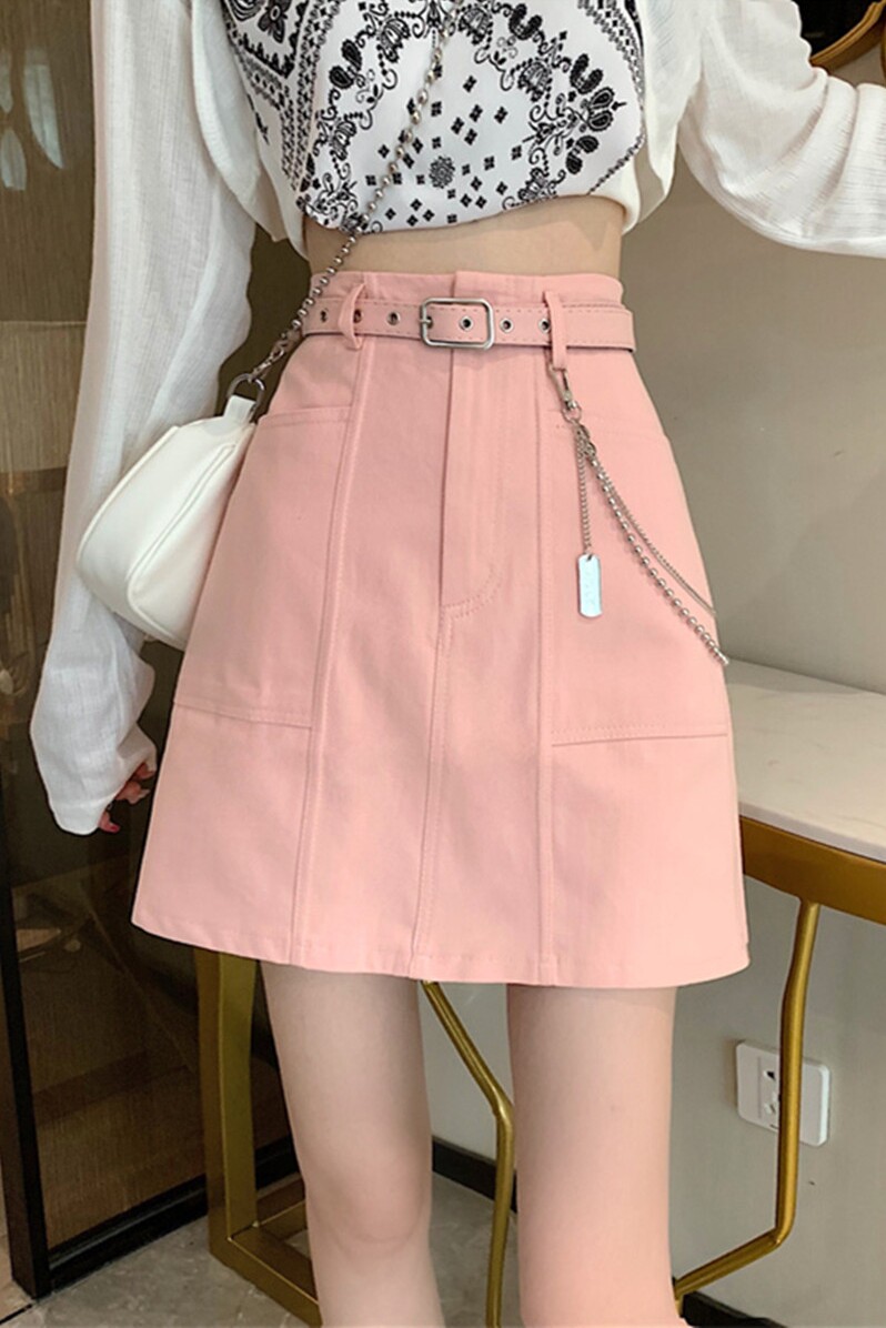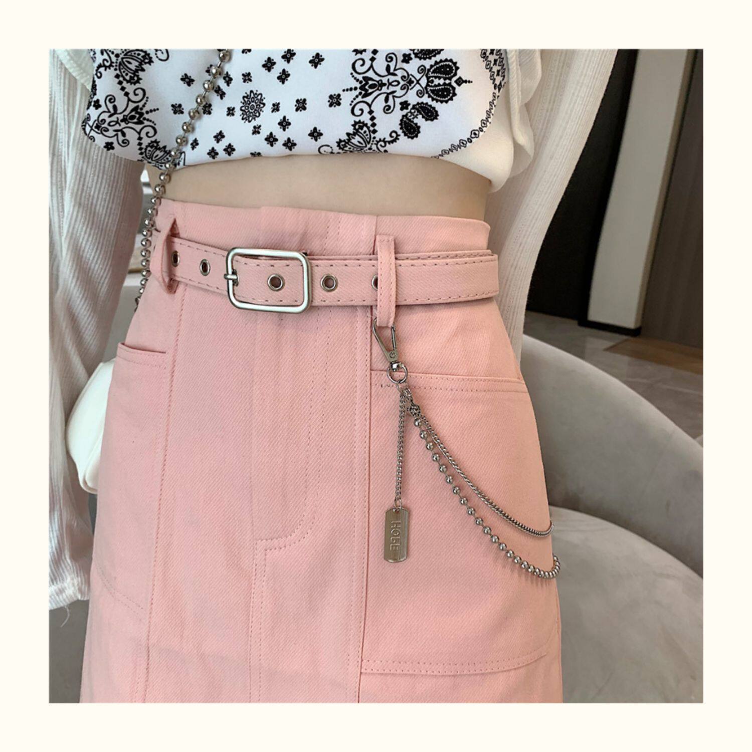Приталенная джинсовая юбка, брендовая универсальная цепь, мини-юбка, высокая талия, А-силуэт, большой размер