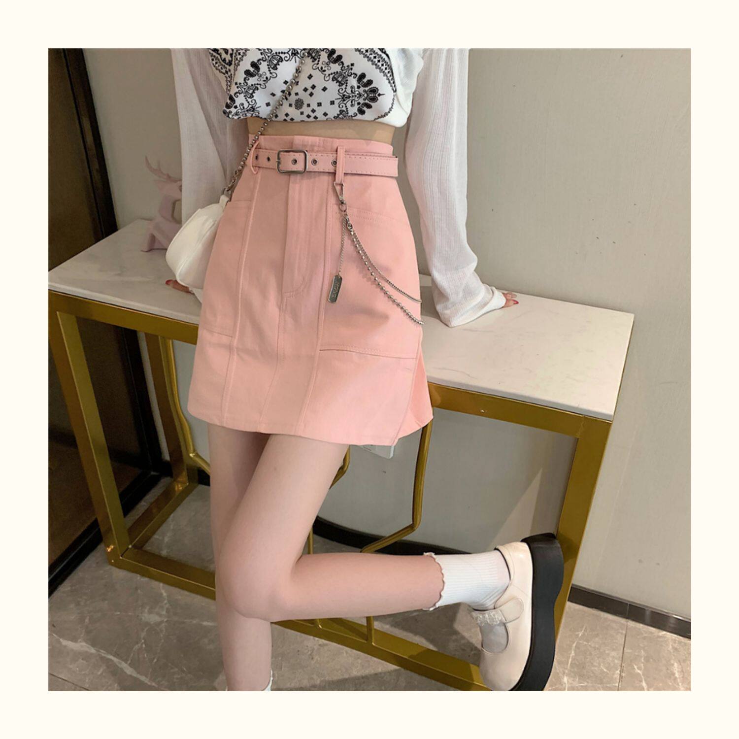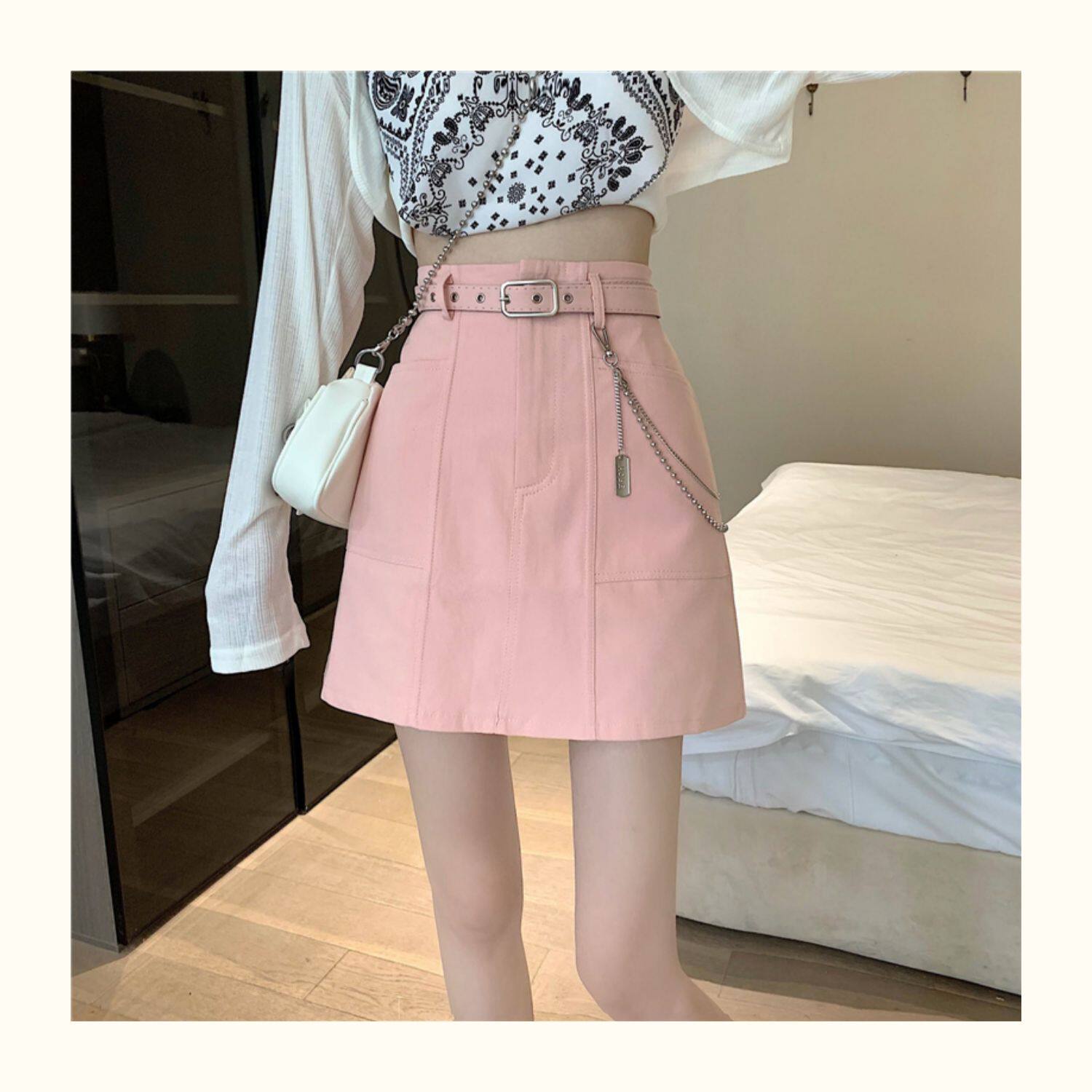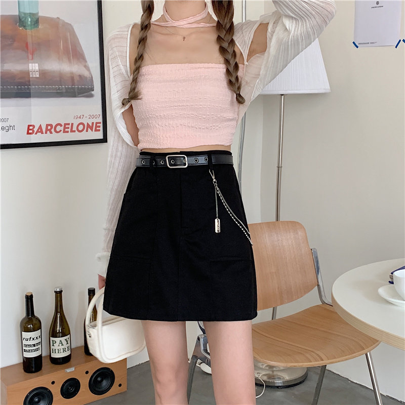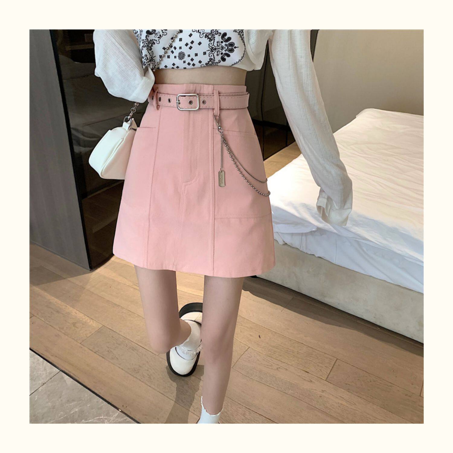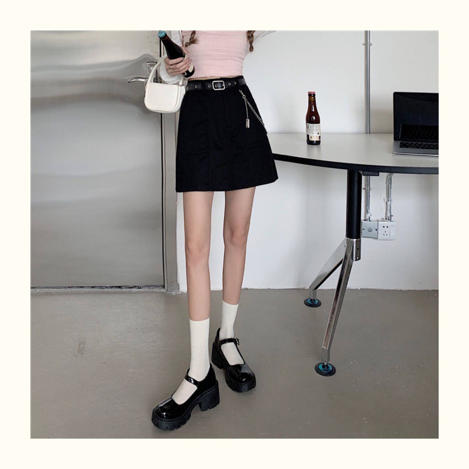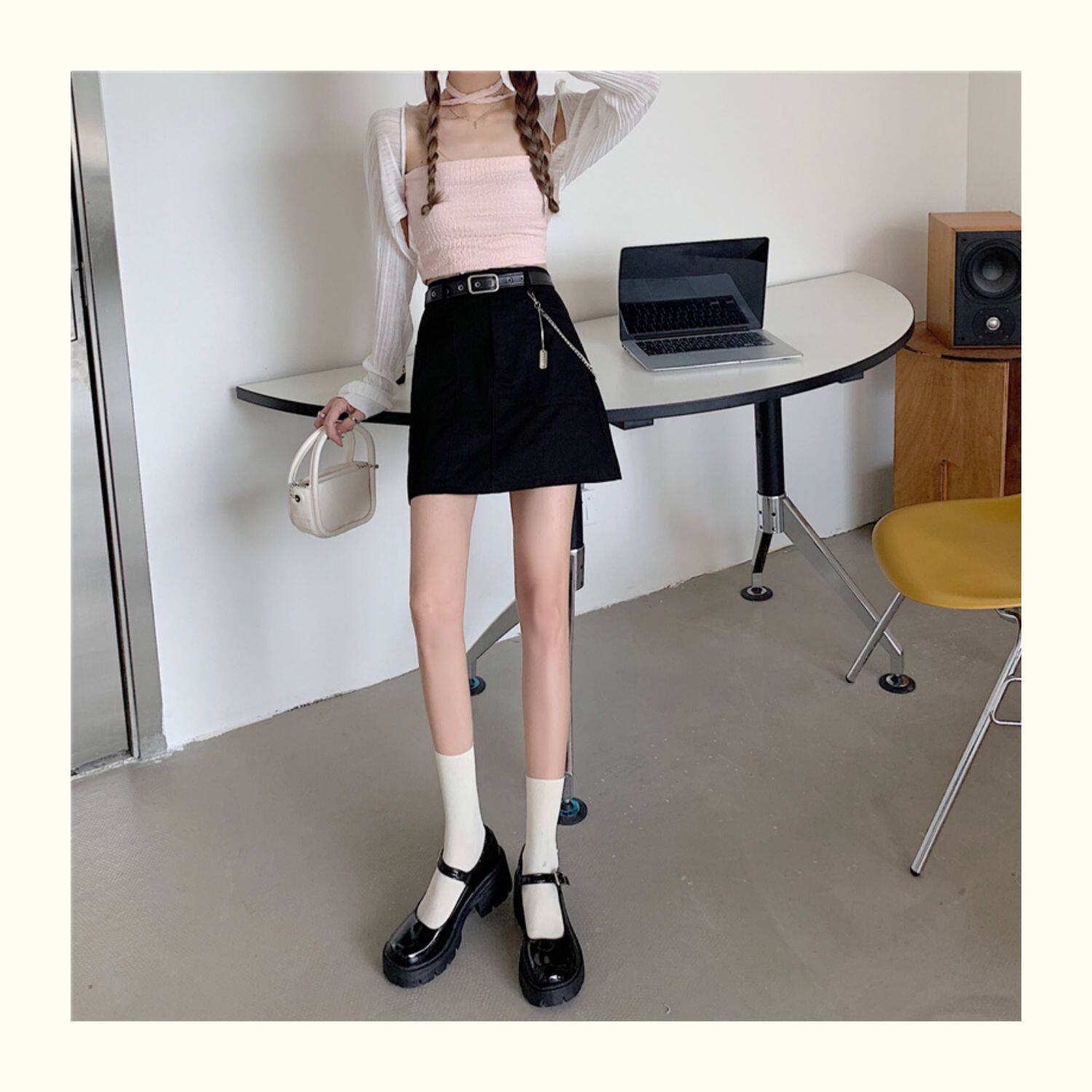 Приталенная джинсовая юбка, брендовая универсальная цепь, мини-юбка, высокая талия, А-силуэт, большой размер