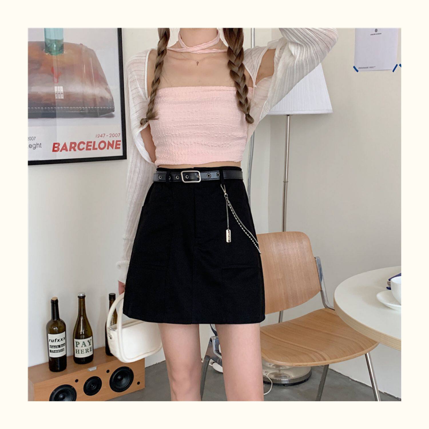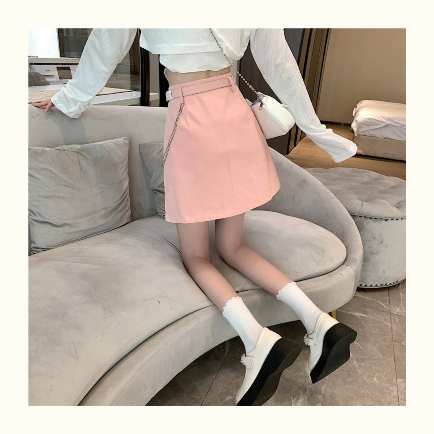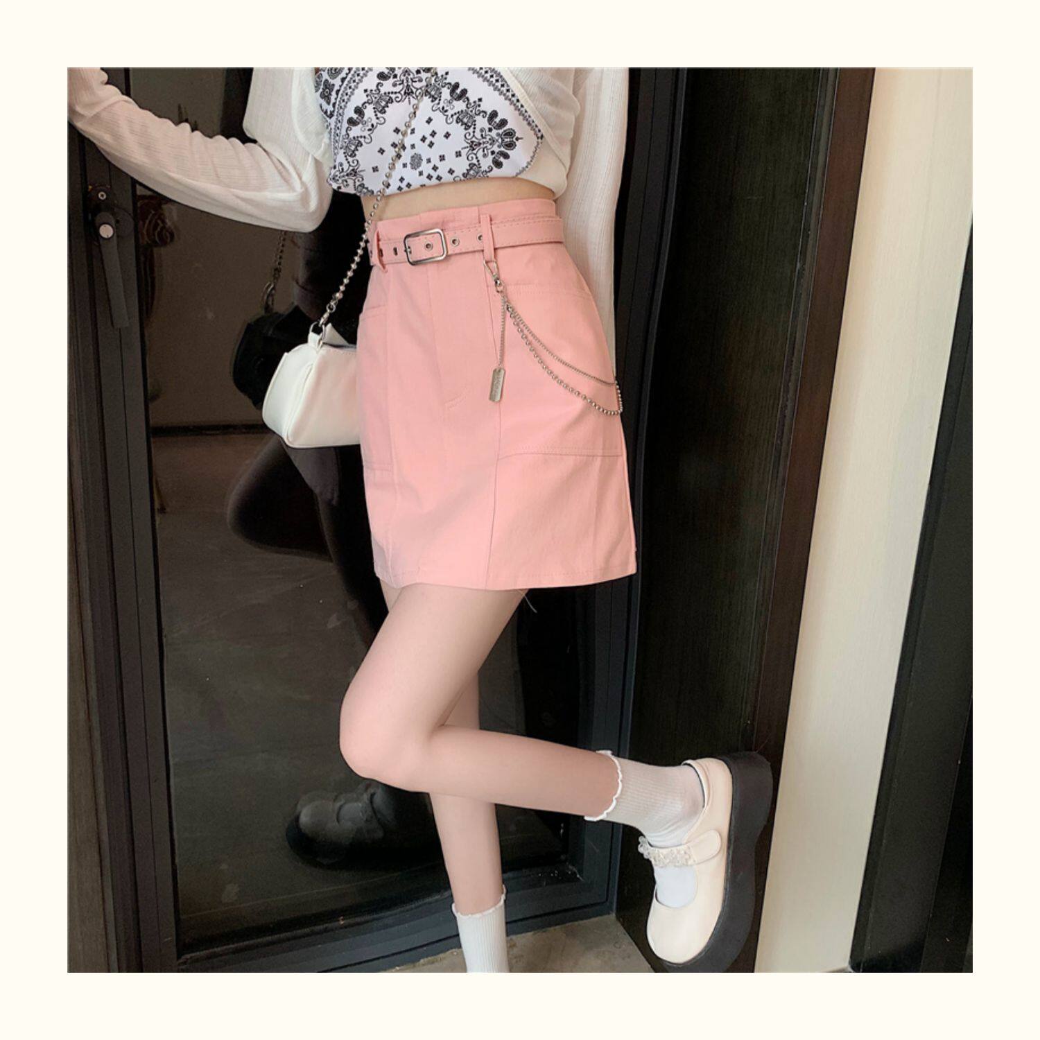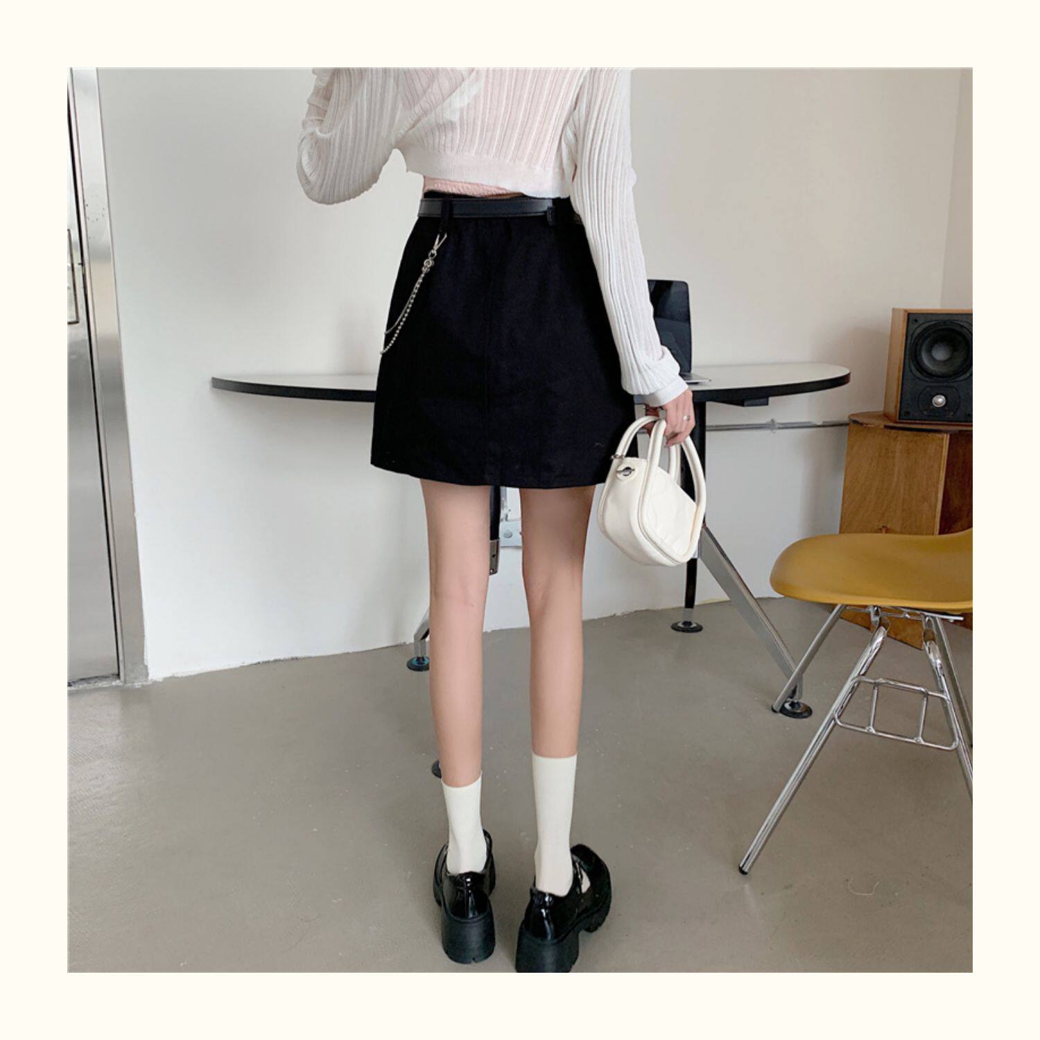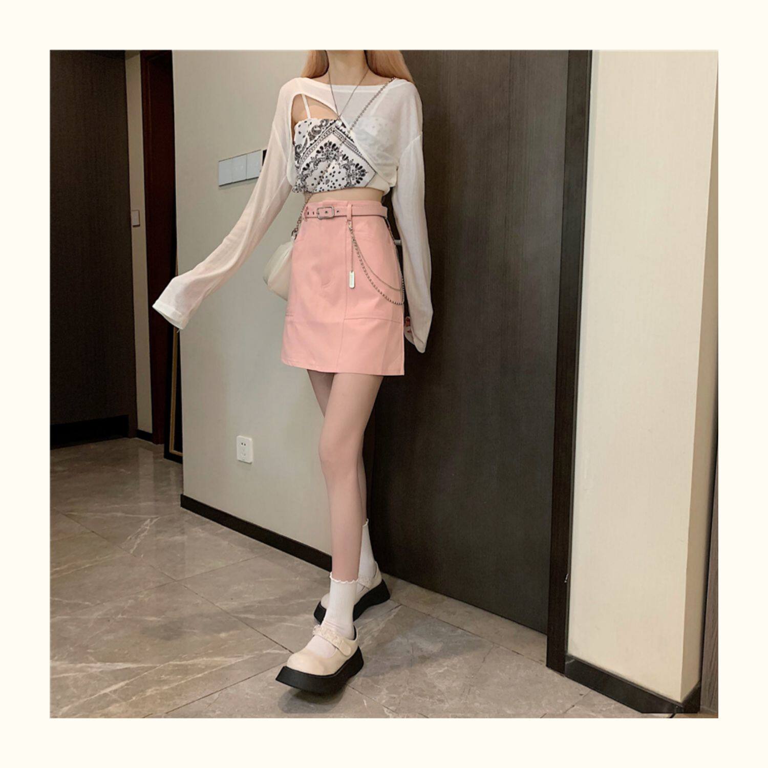 Приталенная джинсовая юбка, брендовая универсальная цепь, мини-юбка, высокая талия, А-силуэт, большой размер