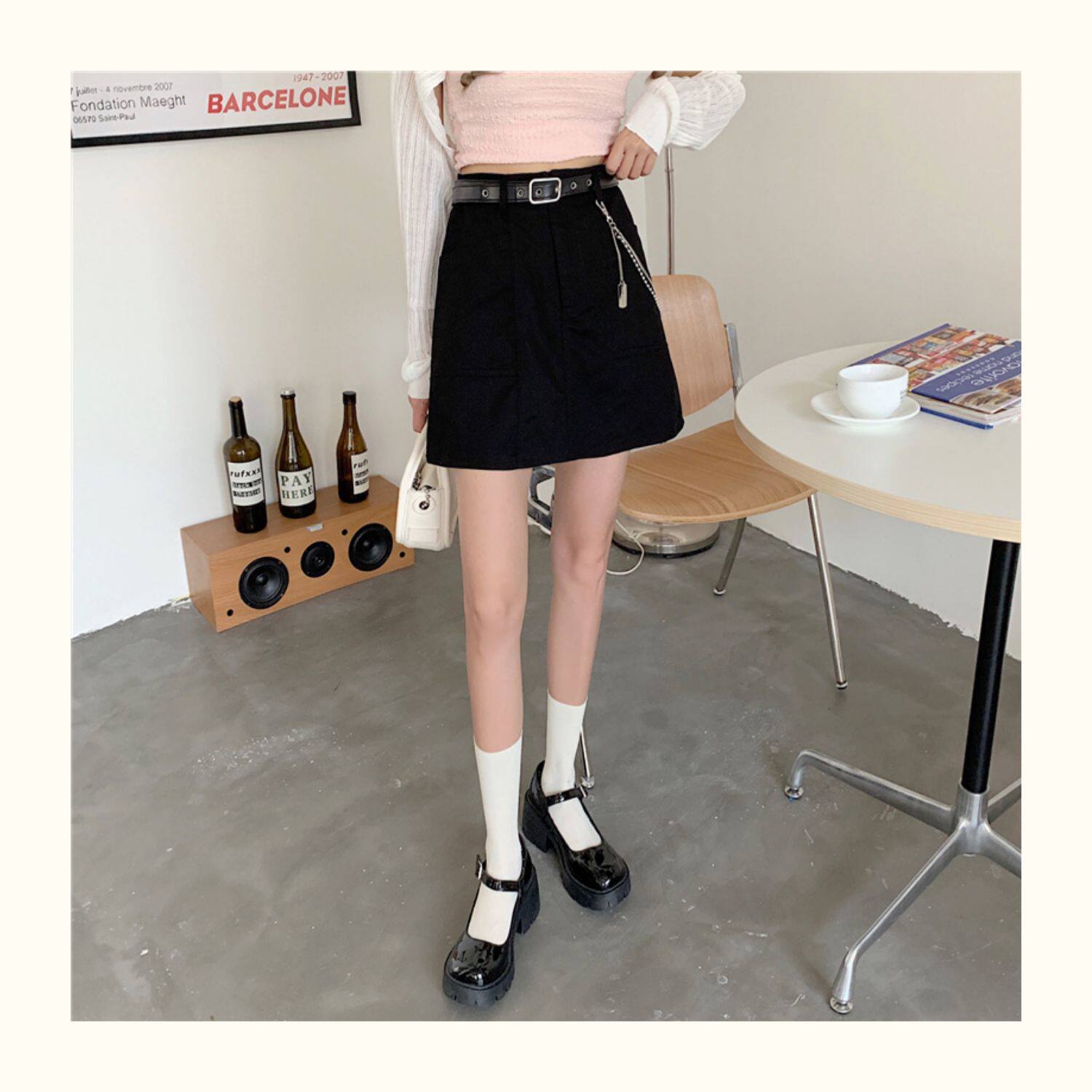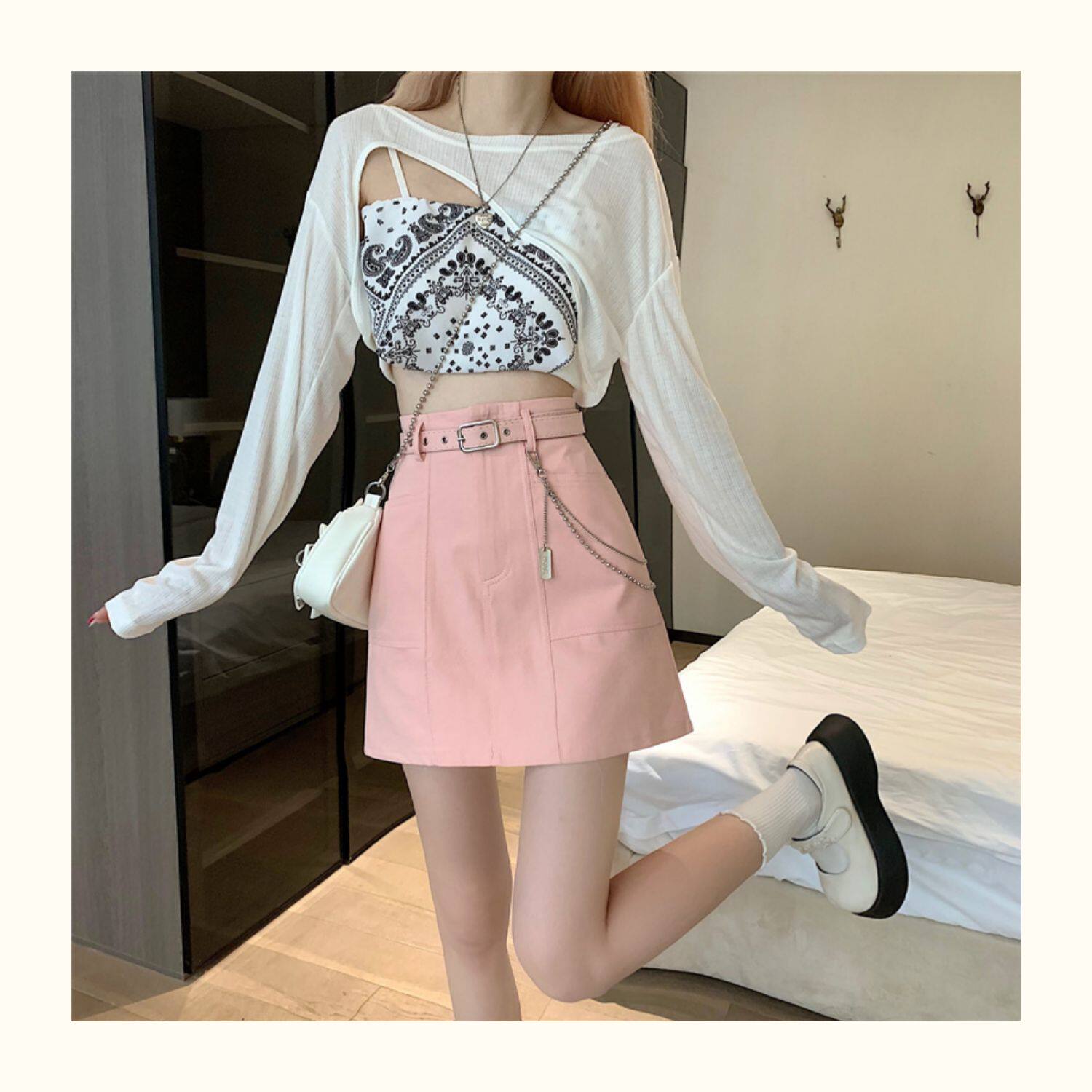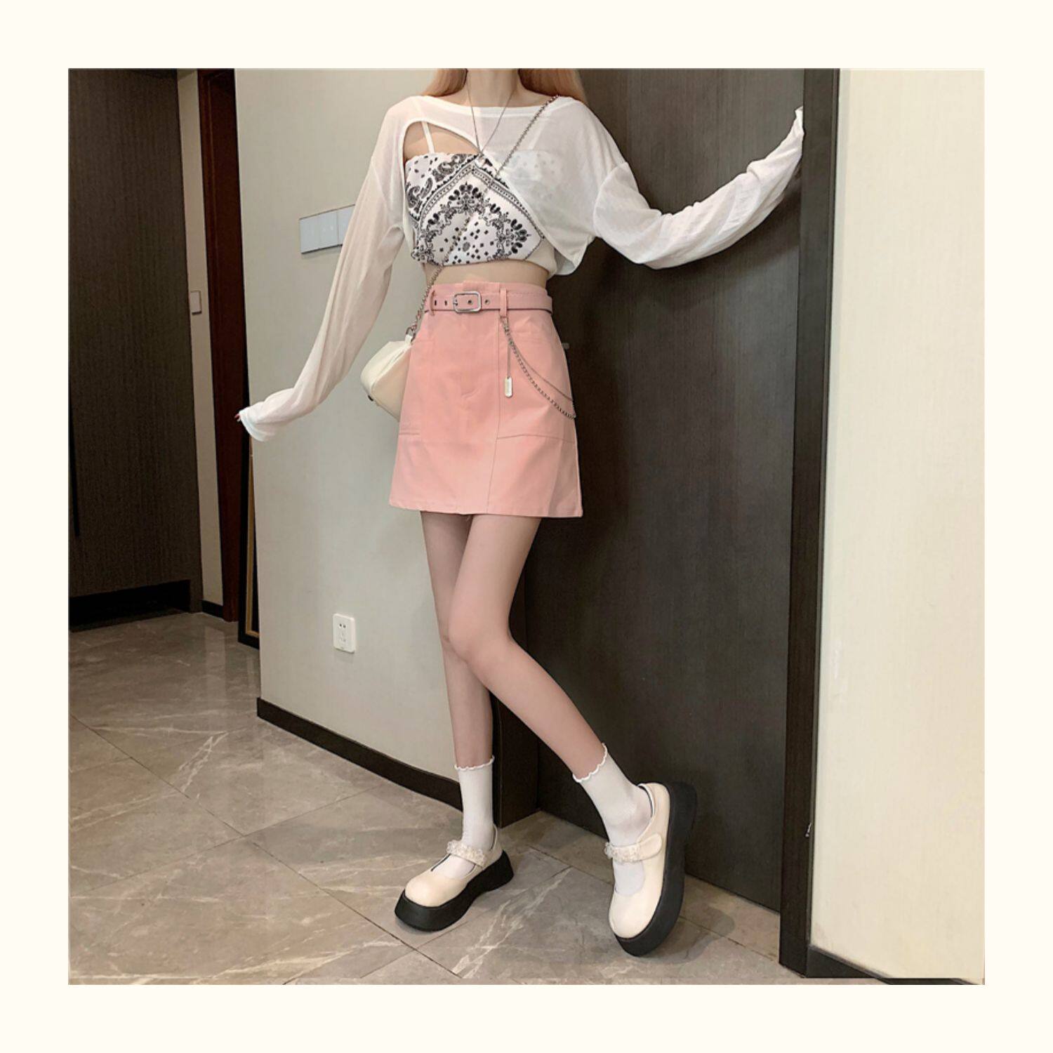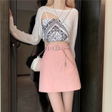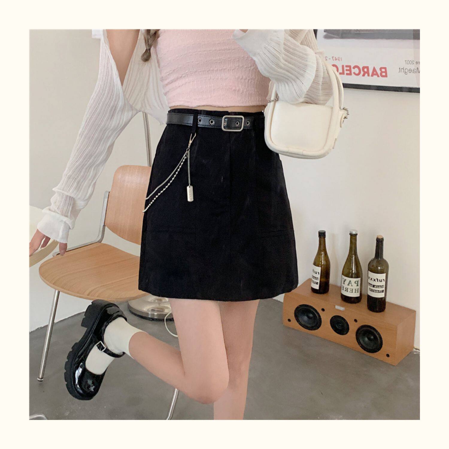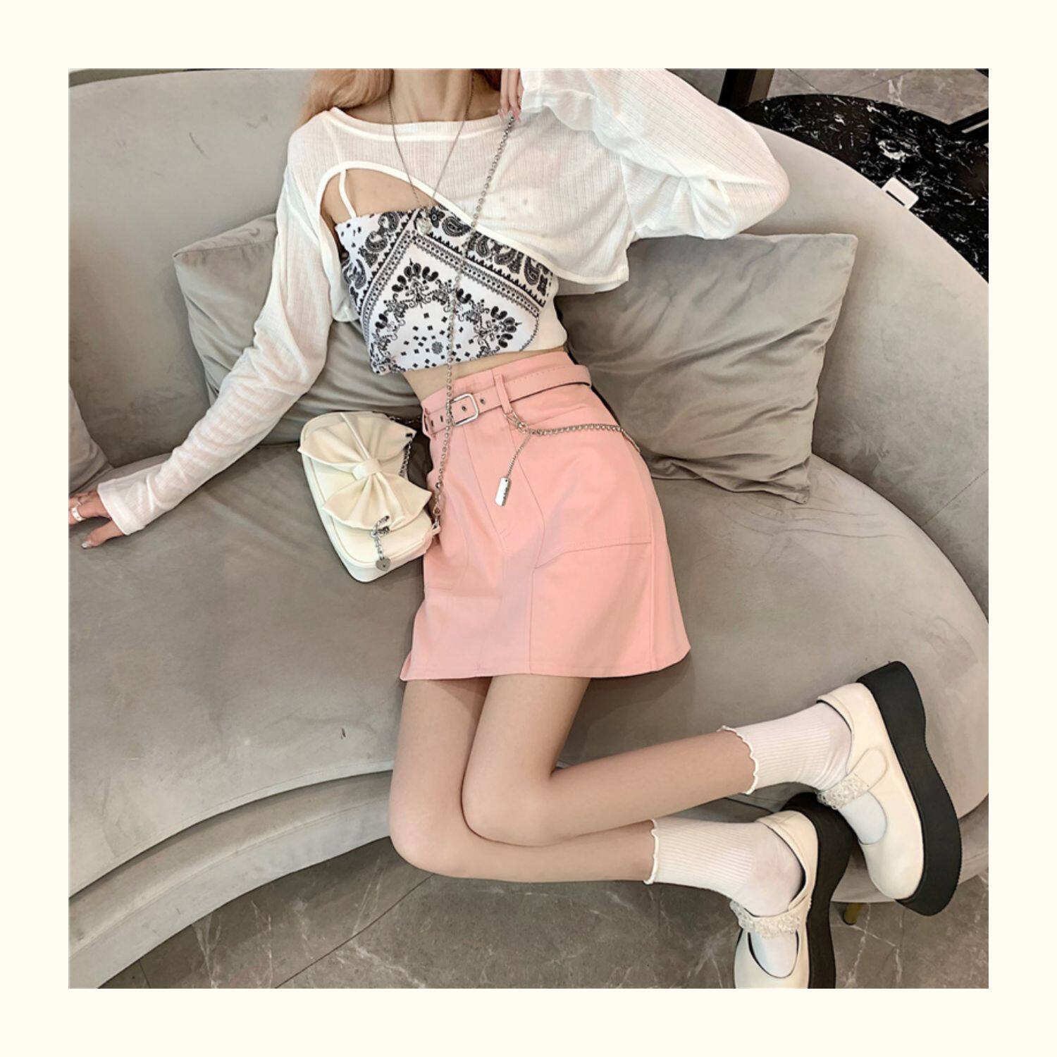 Приталенная джинсовая юбка, брендовая универсальная цепь, мини-юбка, высокая талия, А-силуэт, большой размер