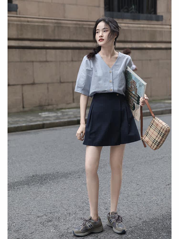 Приталенная тонкая осенняя хаки юбка, высокая талия, А-силуэт, подходит для подростков