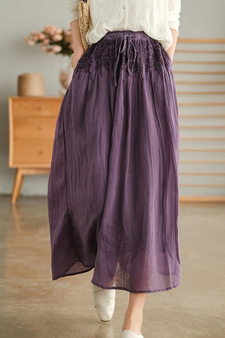 Летняя тонкая ретро юбка, коллекция 2021, оверсайз, высокая талия, с вышивкой