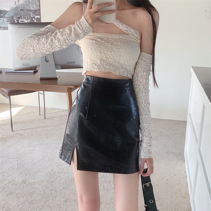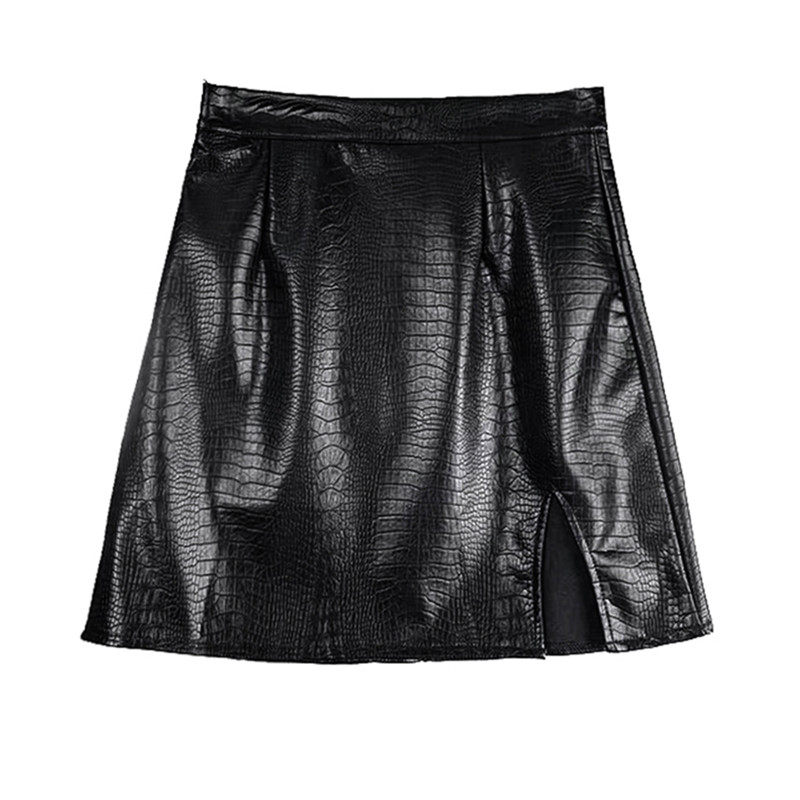 Юбка, полиуретановая мини-юбка, высокая талия, крокодиловый принт, большой размер, А-силуэт