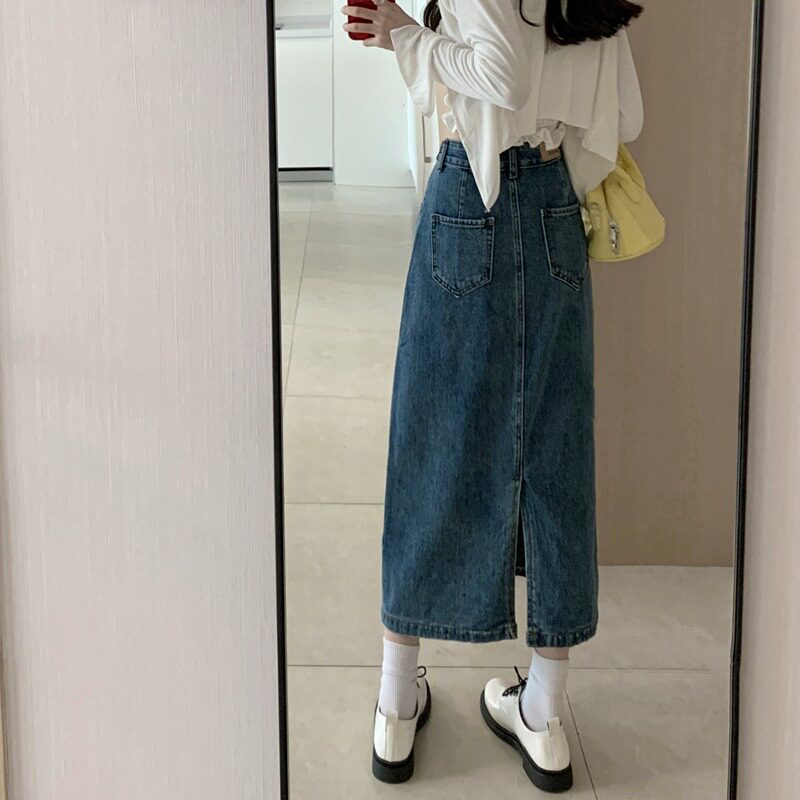 Длинные прямые свободные джинсы, ретро джинсовая юбка, поясная сумка, средней длины, высокая талия, А-силуэт
