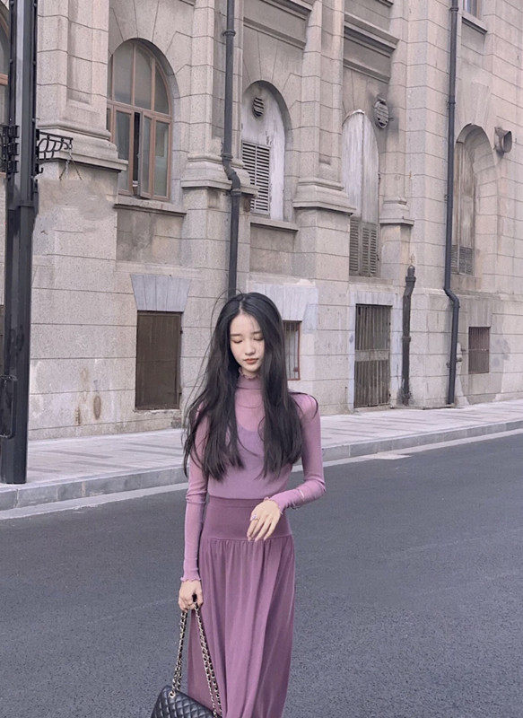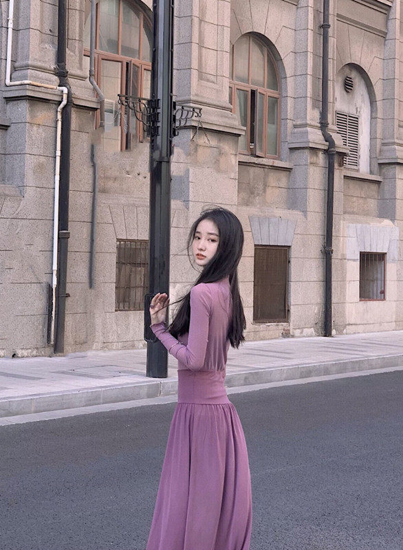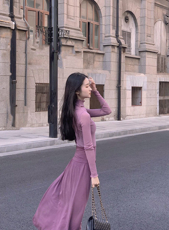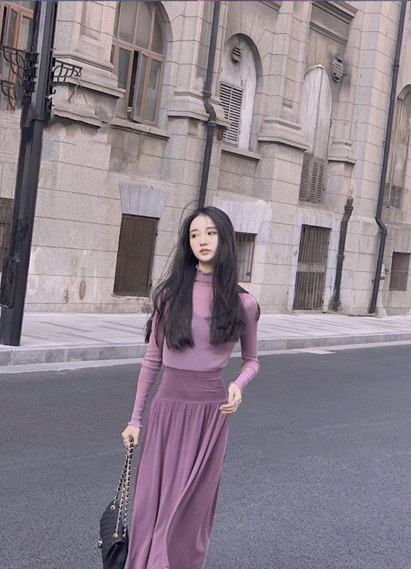 Ретро сиреневая длинная базовая юбка, высокая талия, А-силуэт, свободный прямой крой, средней длины