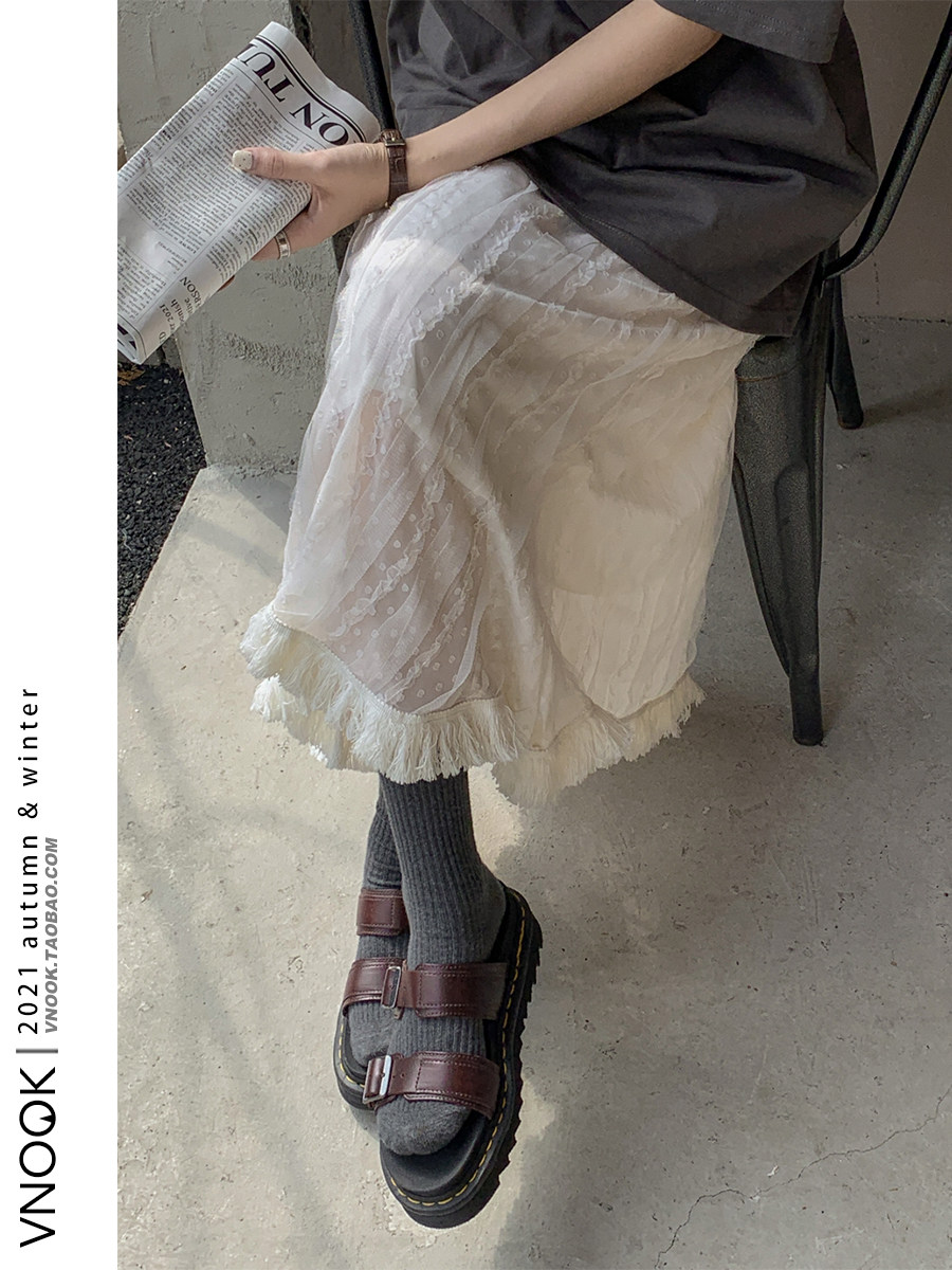Приталенная длинная цветная кружевная осенняя юбка в складку, средней длины