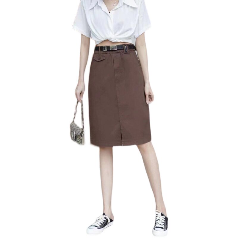 Осенняя приталенная модная длинная юбка, А-силуэт, коллекция 2021, популярно в интернете, высокая талия, средней длины, с акцентом на бедрах