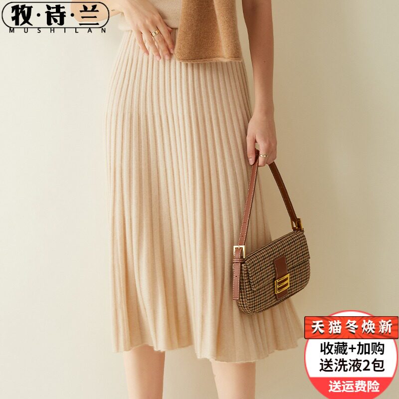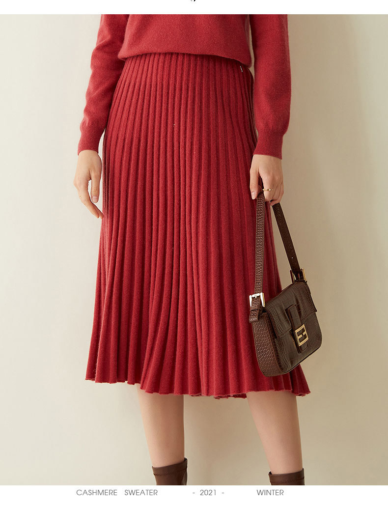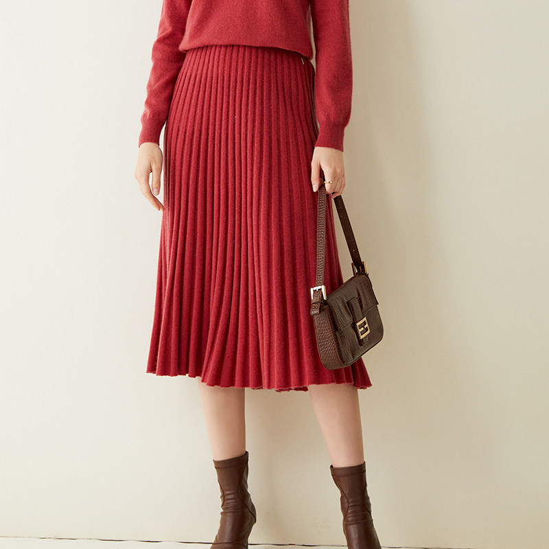 Кашемировая шерстяная демисезонная трикотажная юбка в складку