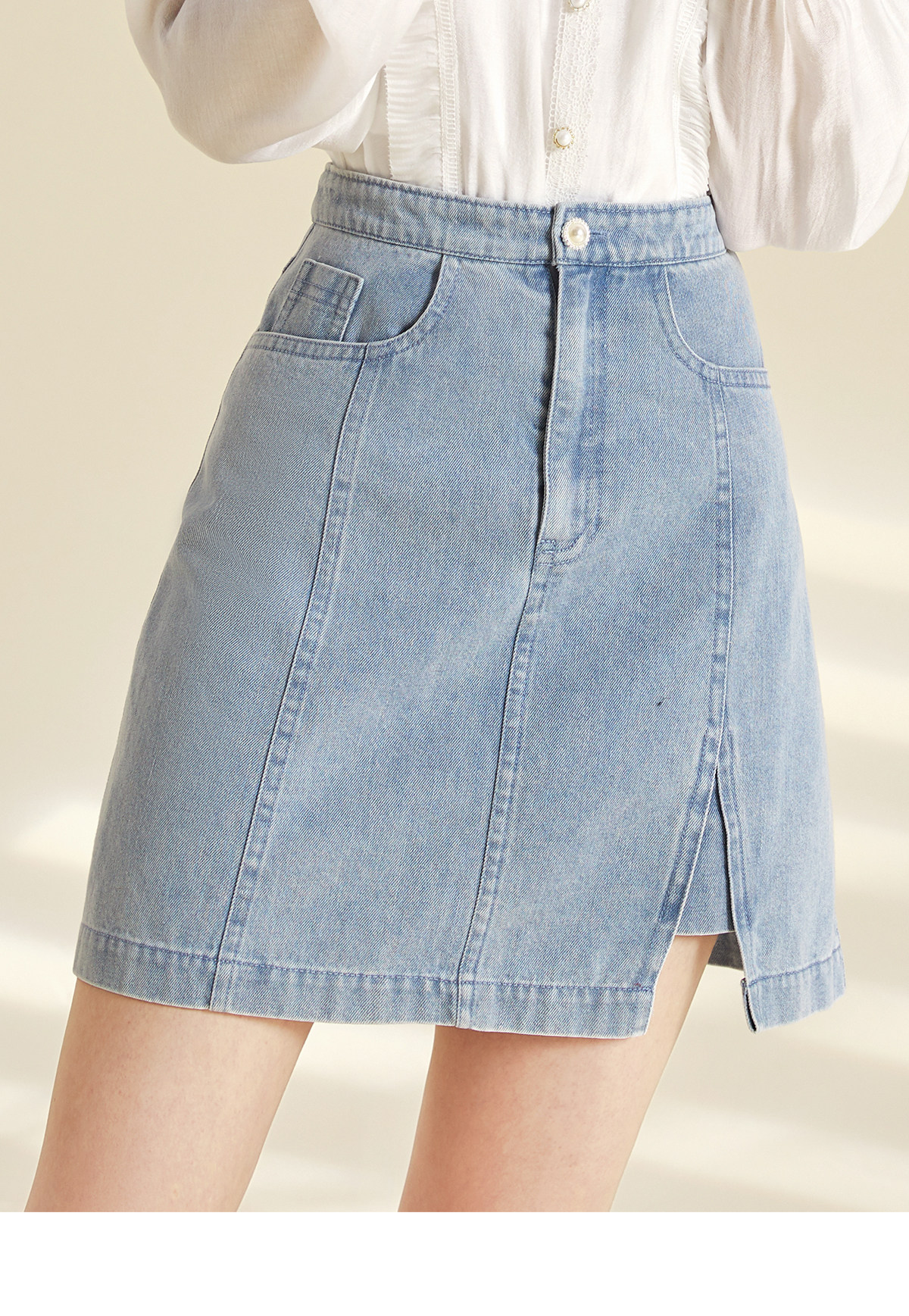 Марлевая демисезонная приталенная джинсовая юбка, А-силуэт