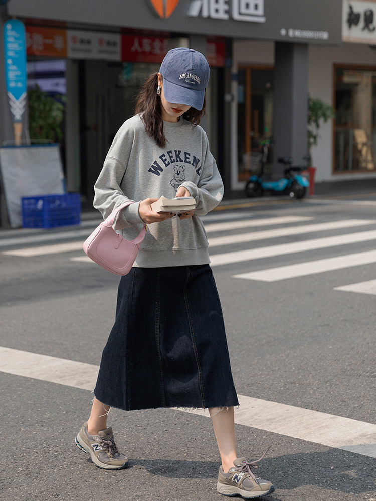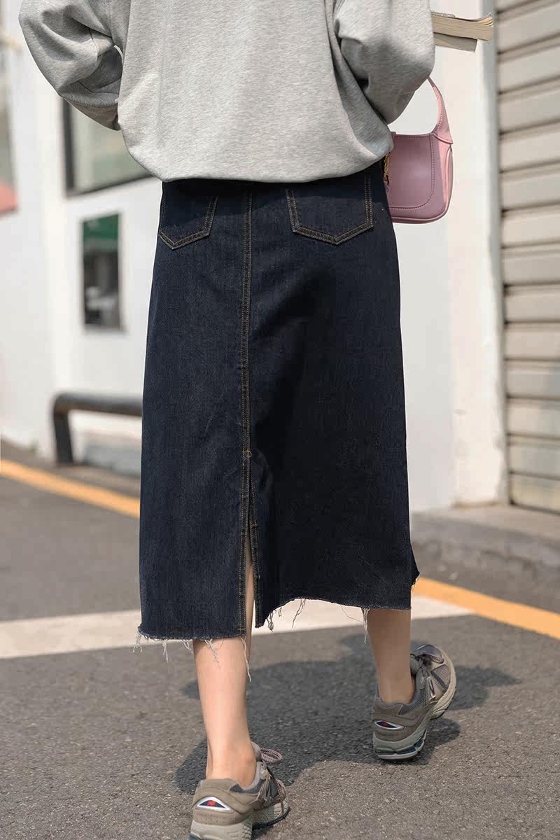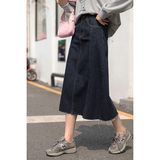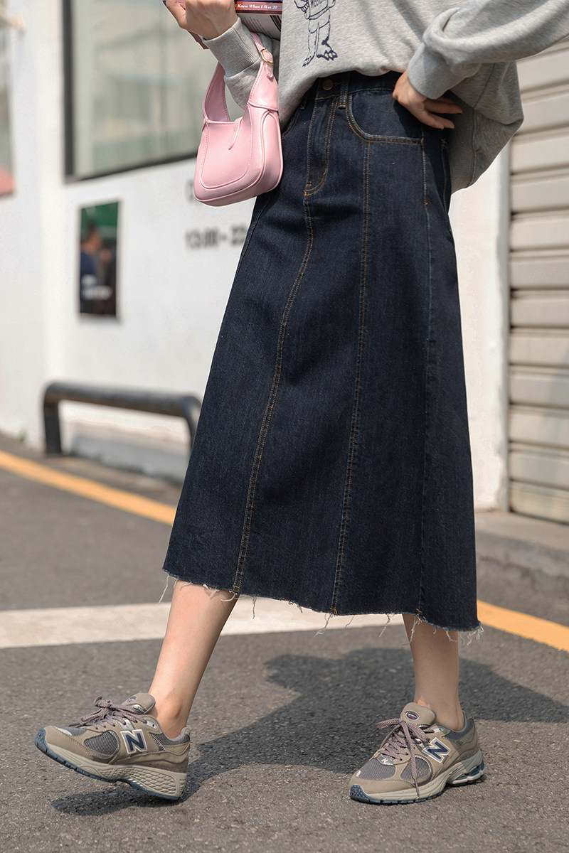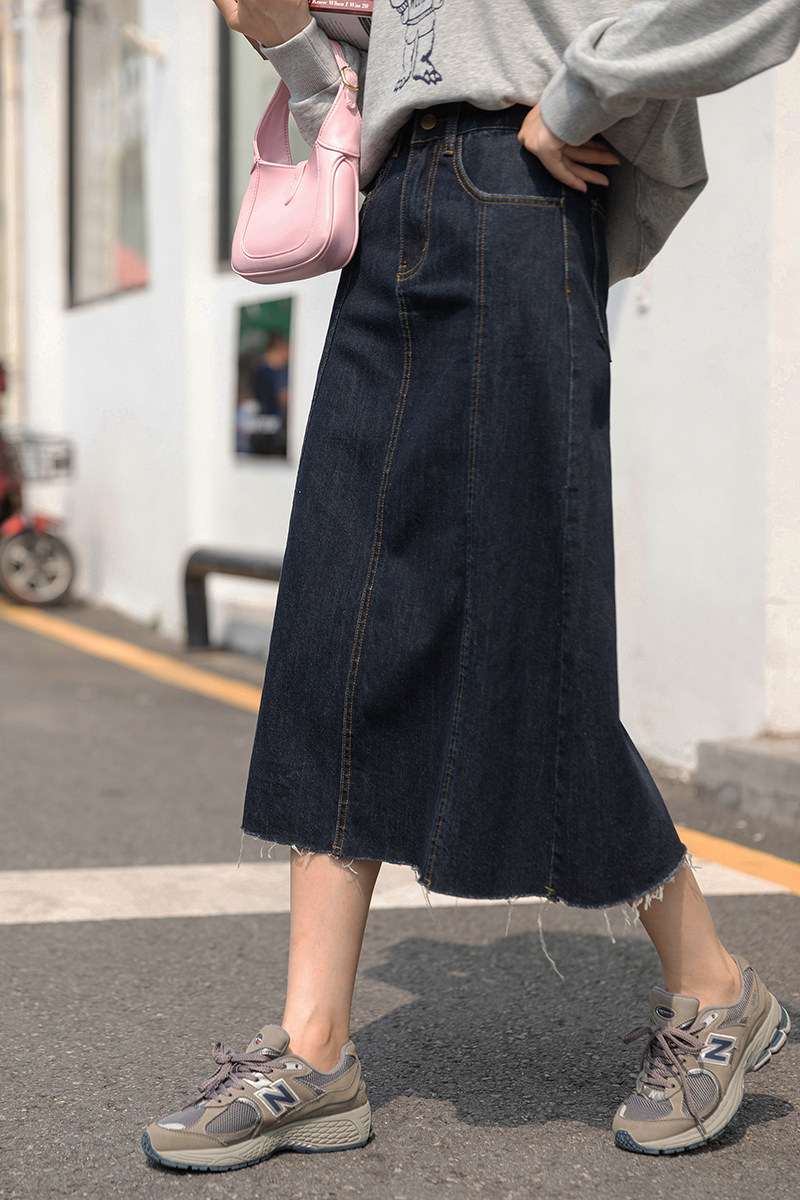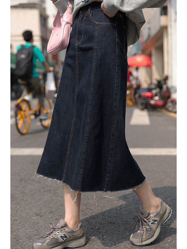 Демисезонная приталенная длинная джинсовая юбка, коллекция 2021, высокая талия, А-силуэт, длина миди, прикрывает попу