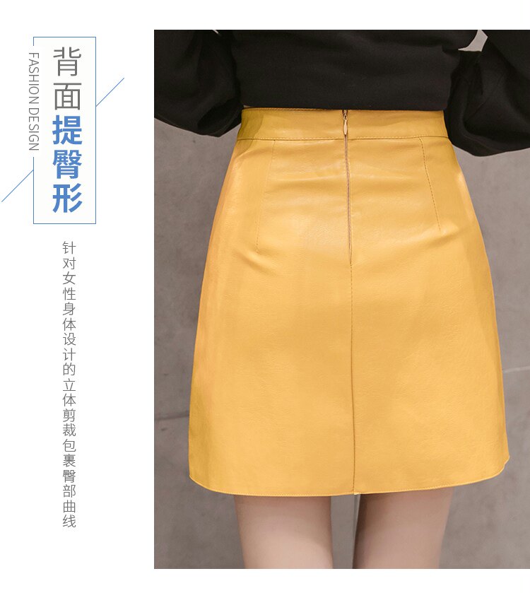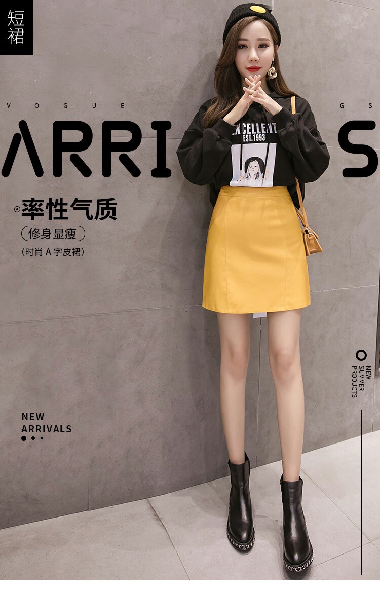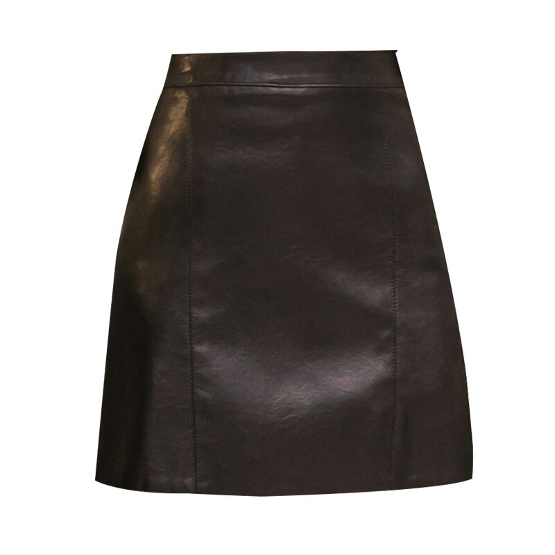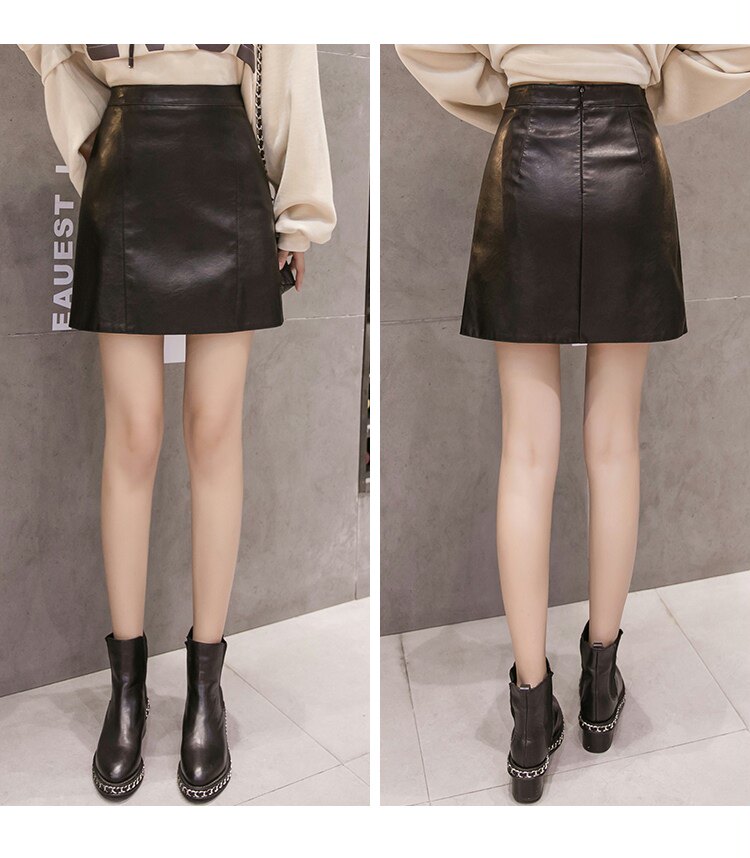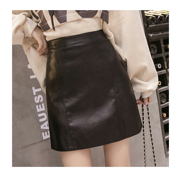 Осенняя демисезонная черная модная юбка, полиуретановая мини-юбка, 2024 года, высокая талия, А-силуэт, с акцентом на бедрах