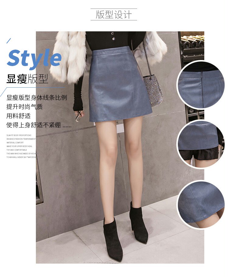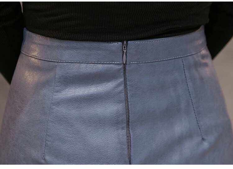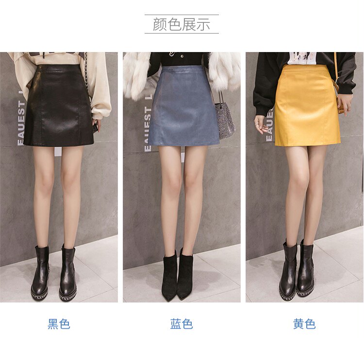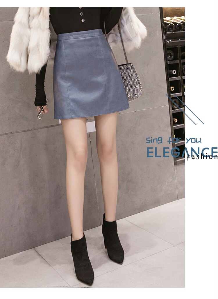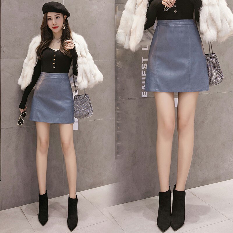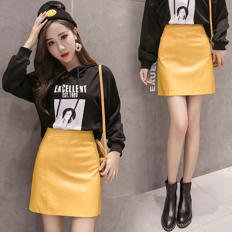 Осенняя демисезонная черная модная юбка, полиуретановая мини-юбка, 2024 года, высокая талия, А-силуэт, с акцентом на бедрах