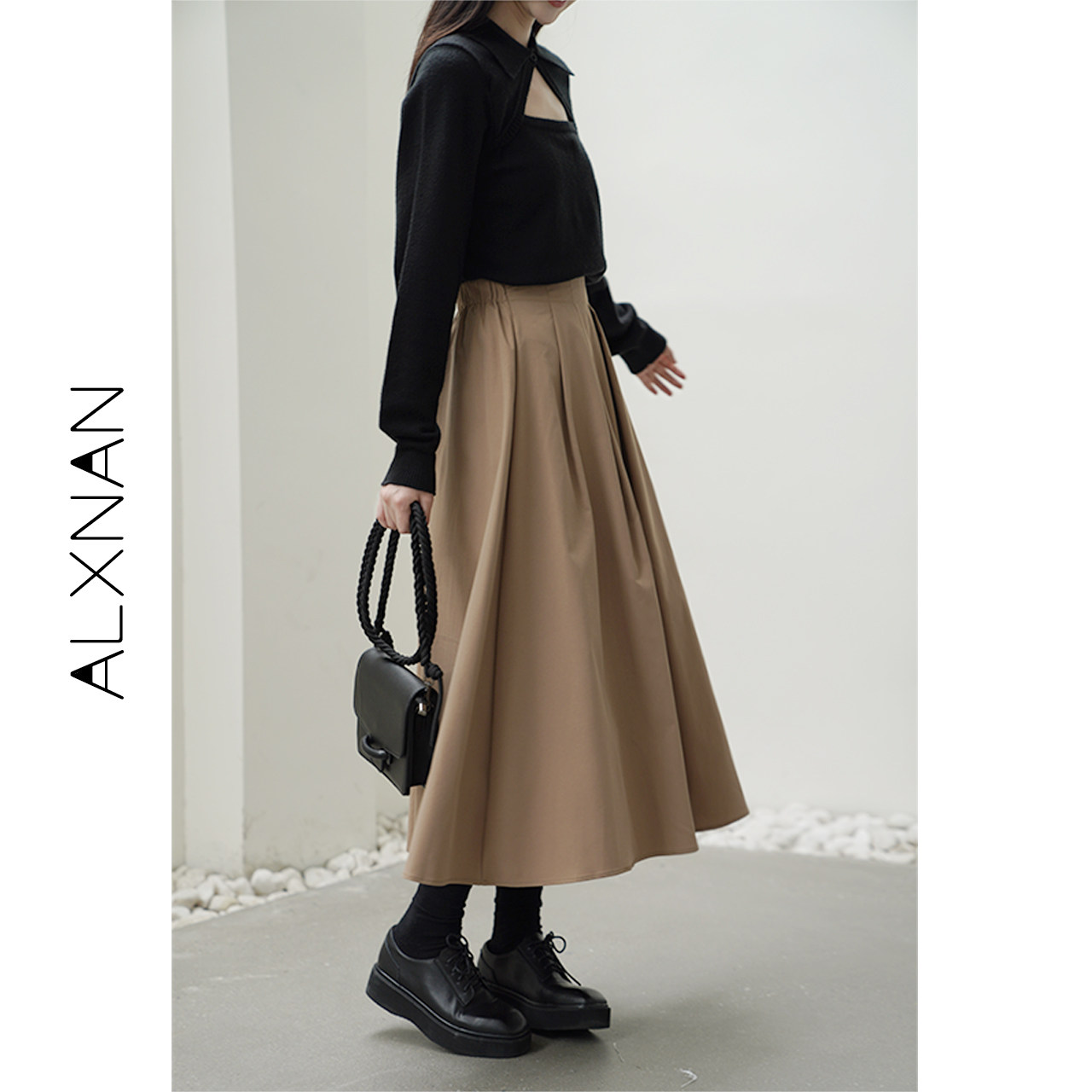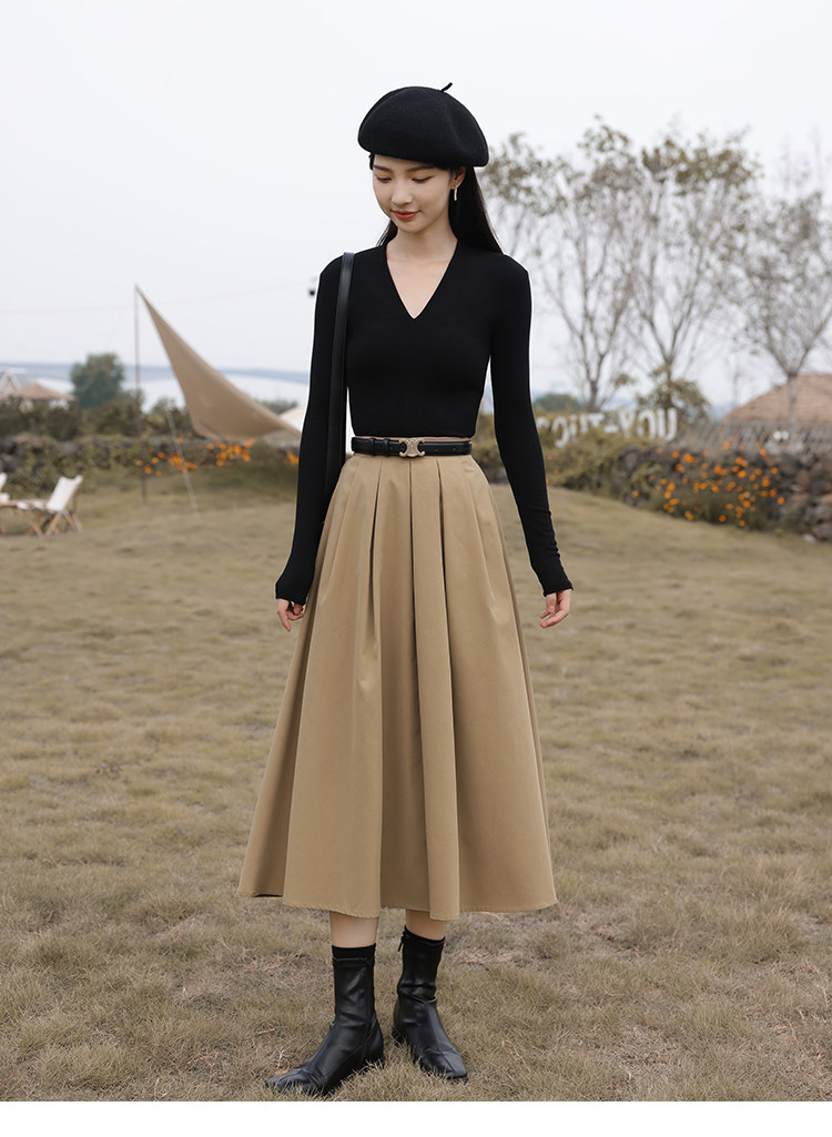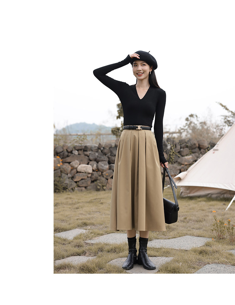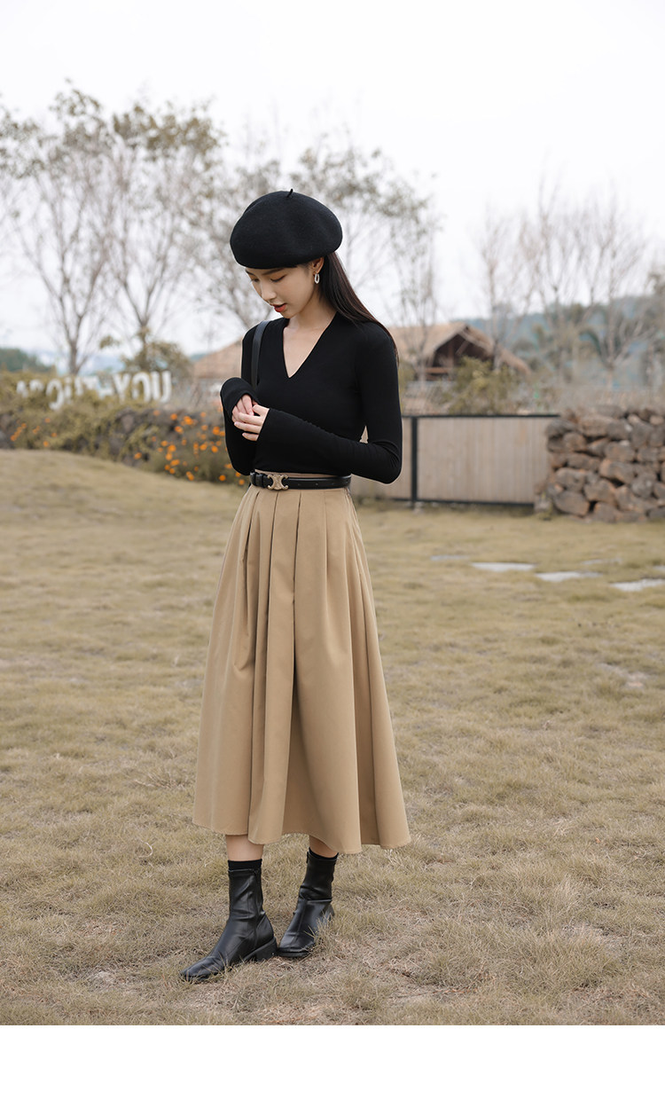 鹿向南 Зимняя цветная осенняя модная юбка в складку, плиссированная юбка, высокая талия