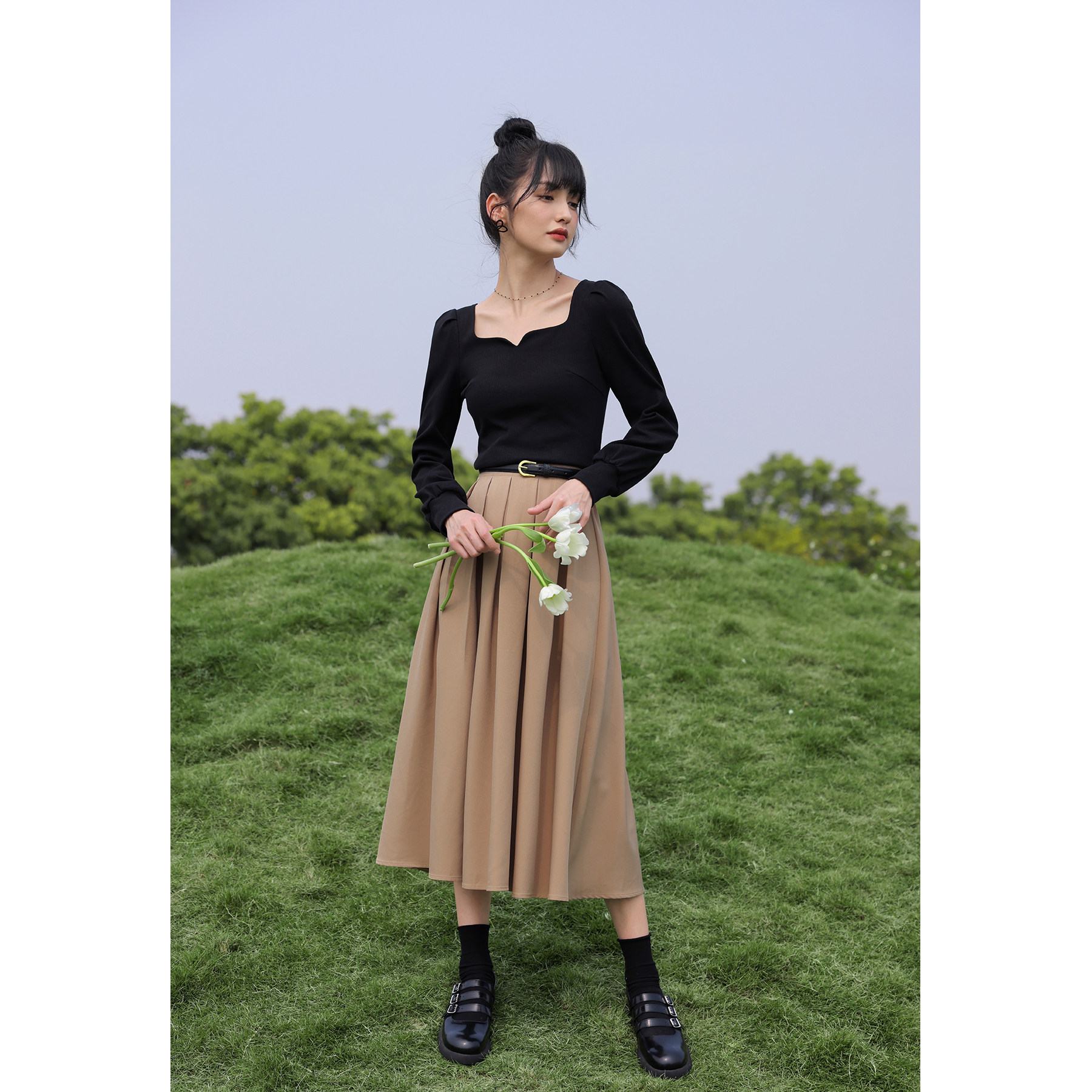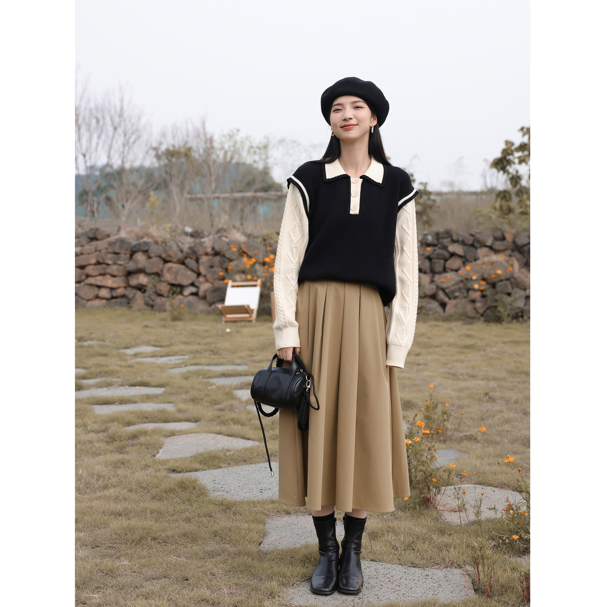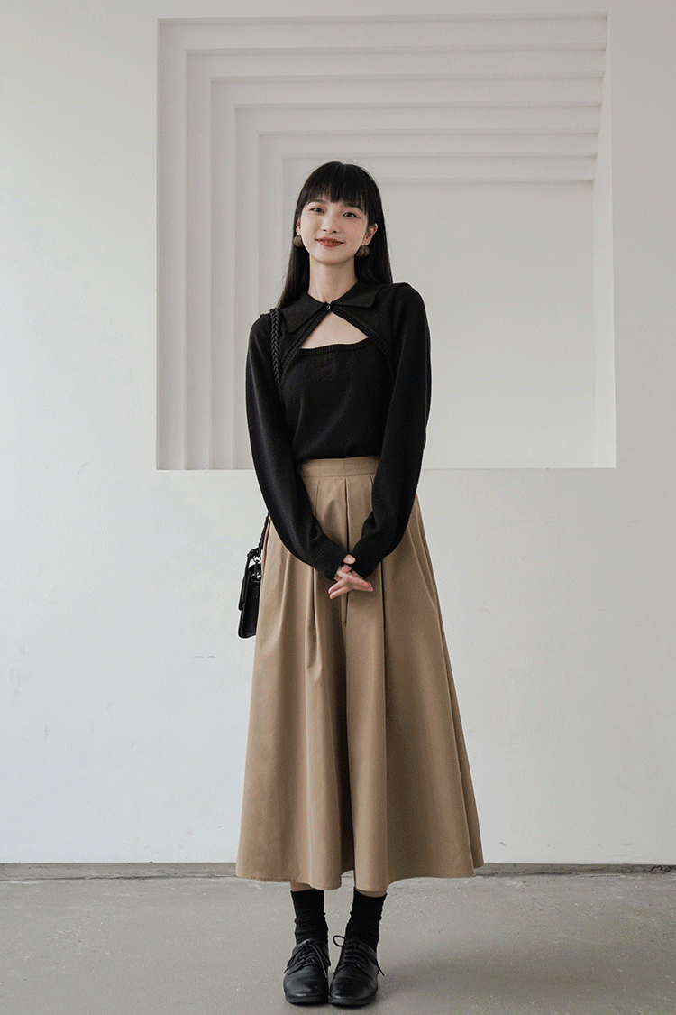 鹿向南 Зимняя цветная осенняя модная юбка в складку, плиссированная юбка, высокая талия