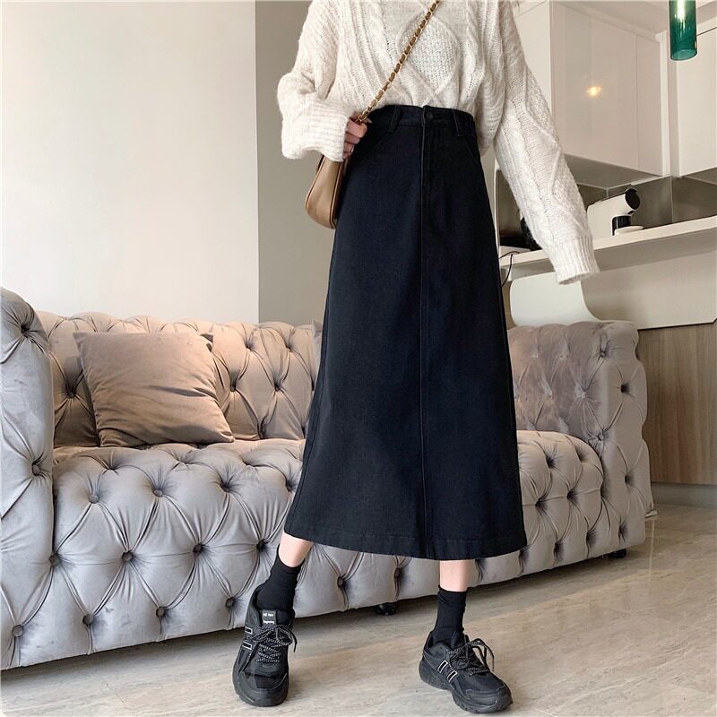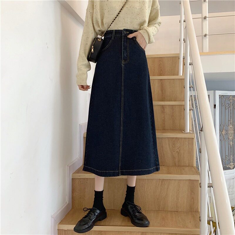 Приталенная осенняя ретро длинная джинсовая юбка, высокая талия, 2024 года, А-силуэт