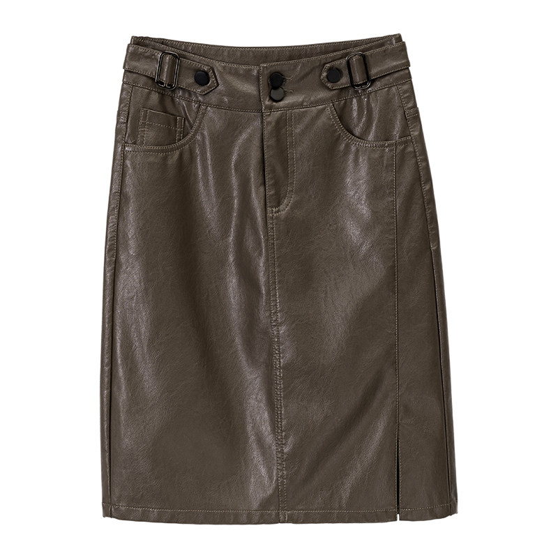 Полиуретановая демисезонная длинная юбка, коллекция 2021, городской стиль, А-силуэт, средней длины, высокая талия, с акцентом на бедрах