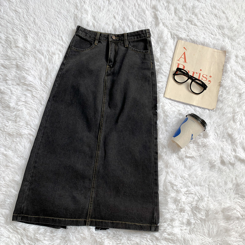 Дизайнерская черная летняя брендовая джинсовая юбка, тренд сезона, высокая талия, средней длины, А-силуэт