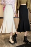 Длинная осенняя юбка в складку, рыбий хвост, 2021 года, высокая талия, подходит для подростков, А-силуэт