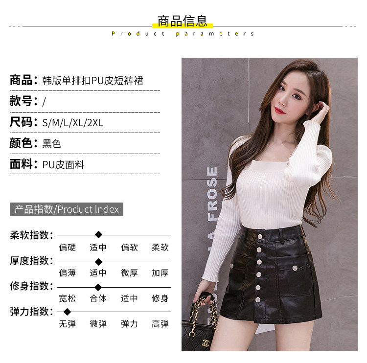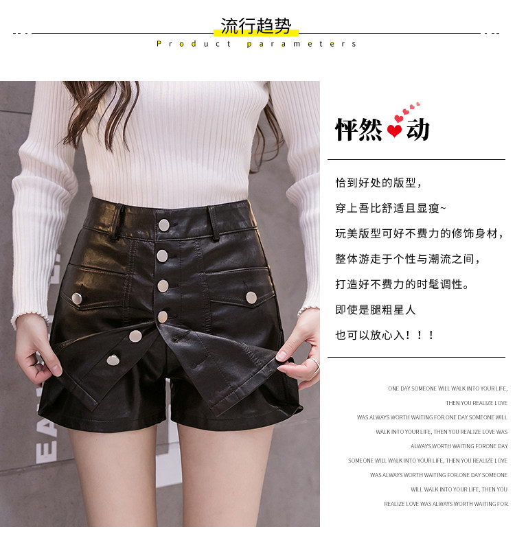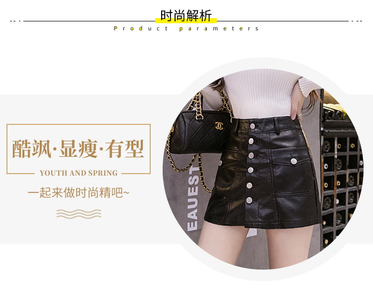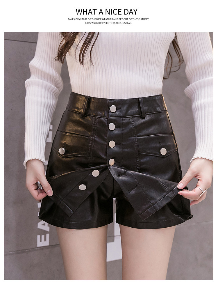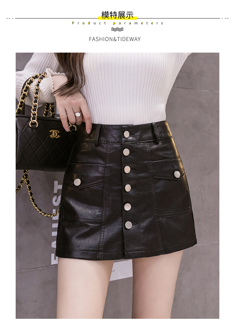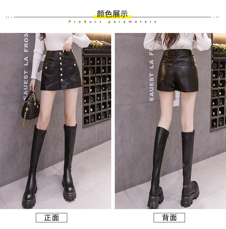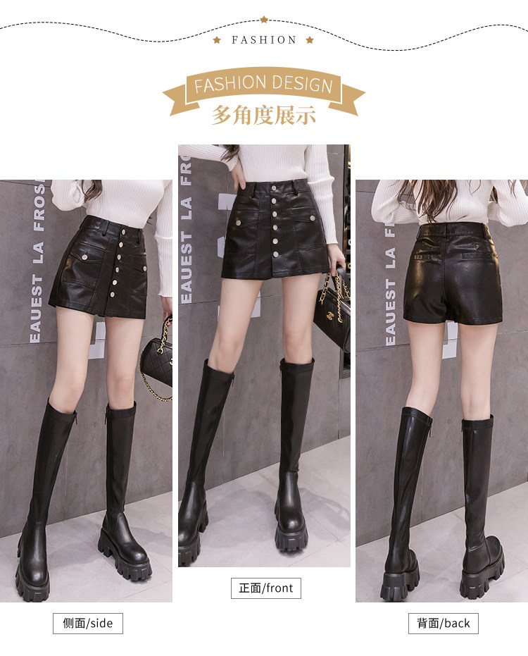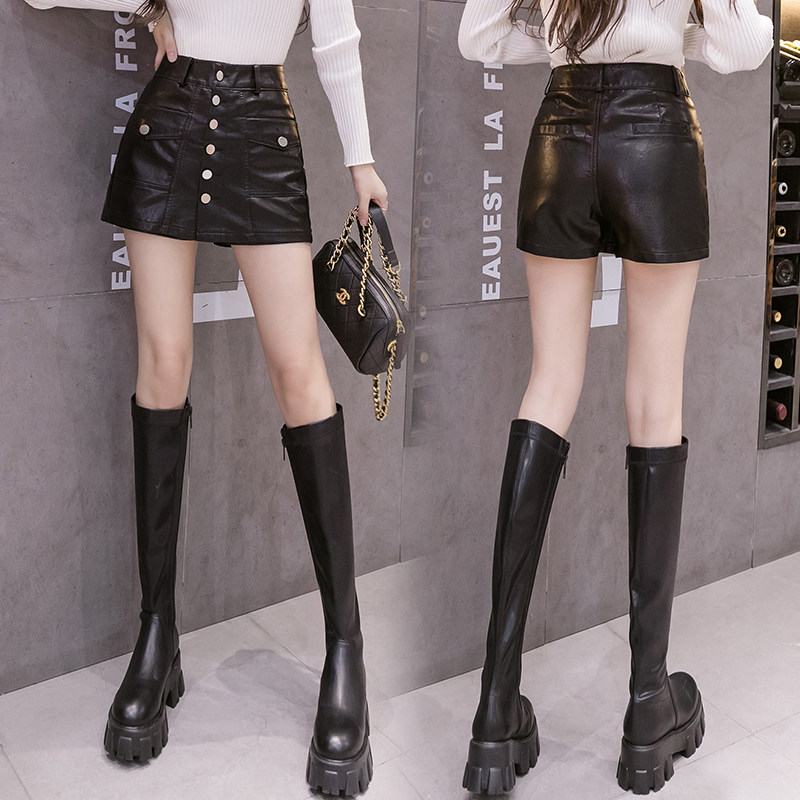 Осенний комплект, юбка, черные штаны, полиуретановые шорты, 2023, высокая талия