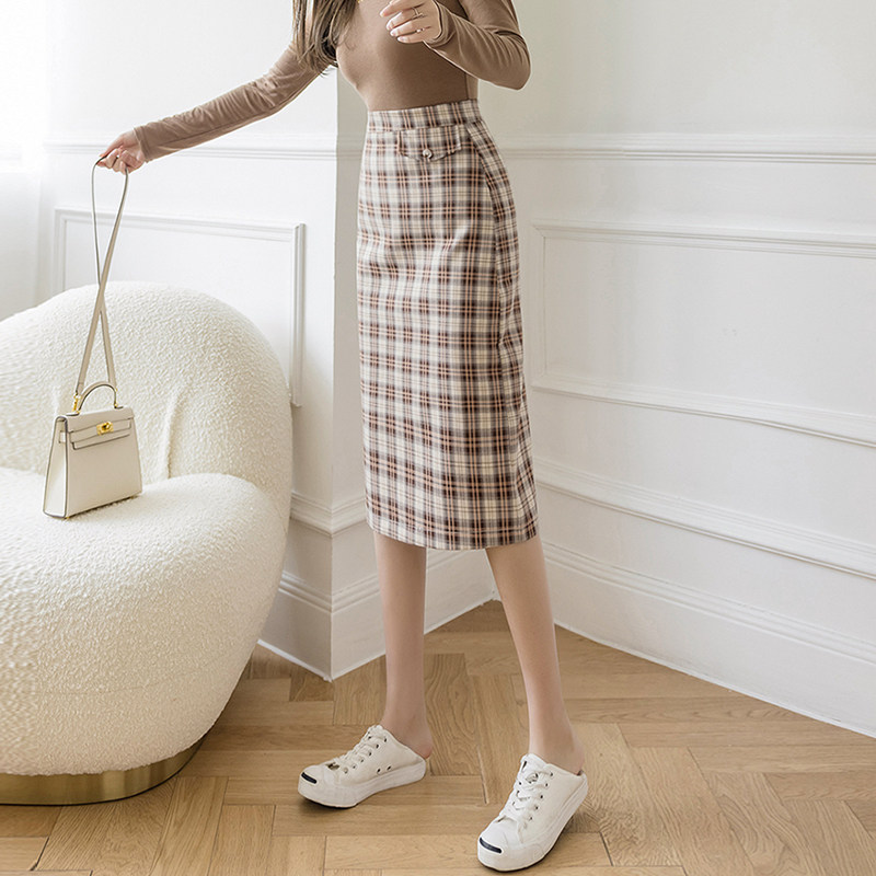 Дизайнерская клетчатая осенняя длинная длинная юбка, высокая талия, тренд сезона, с акцентом на бедрах, А-силуэт, длина макси