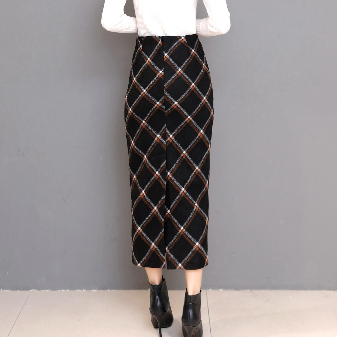 Демисезонная шерстяная юбка в складку, приталенная длинная длинная юбка, высокая талия, увеличенная толщина, длина макси, с акцентом на бедрах