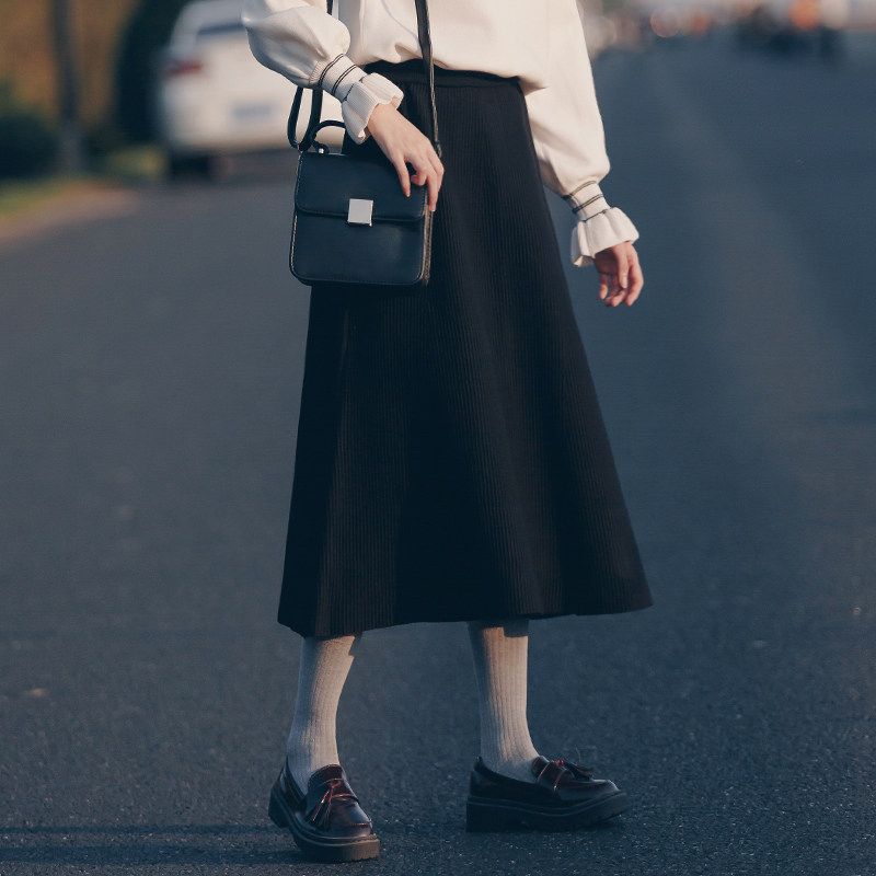 Демисезонная ретро трикотажная длинная юбка, средней длины, 2022, высокая талия, подходит для подростков