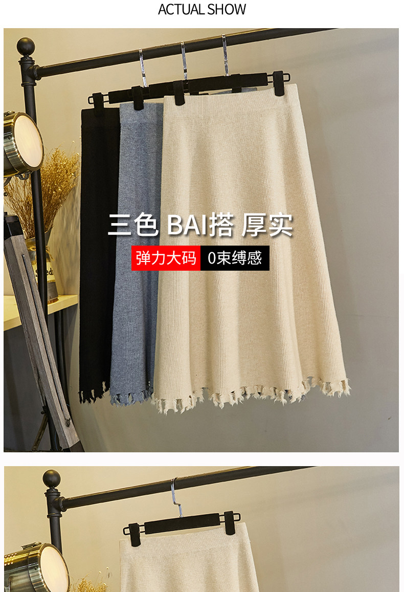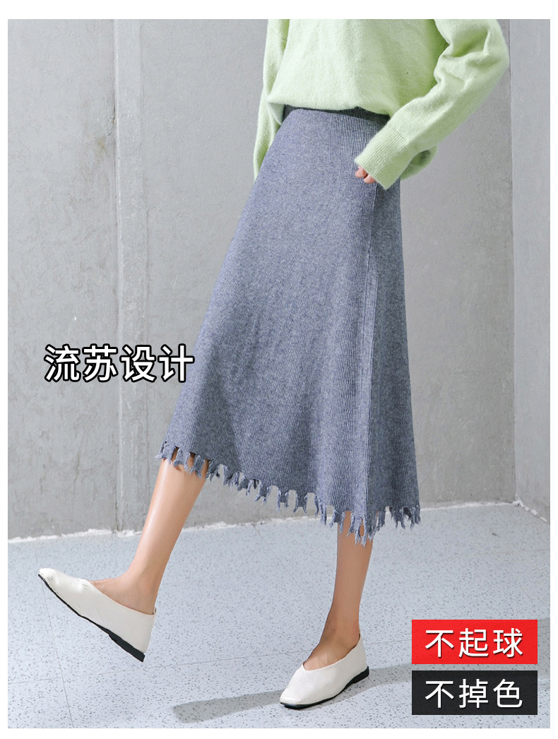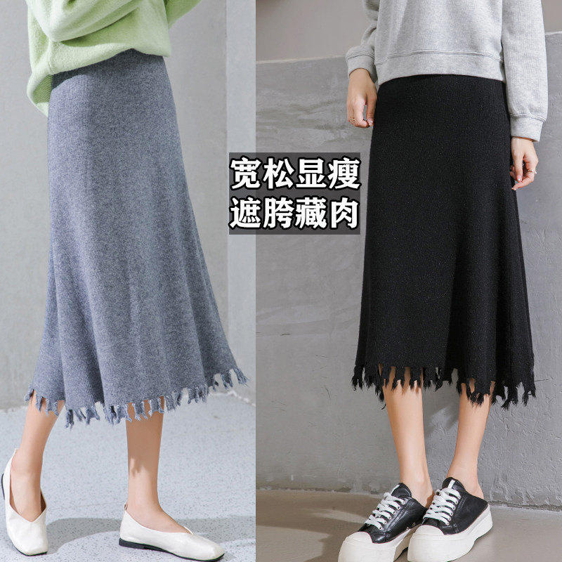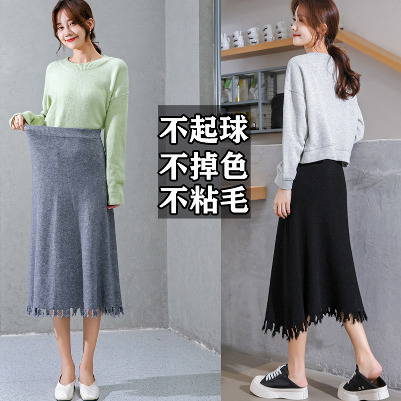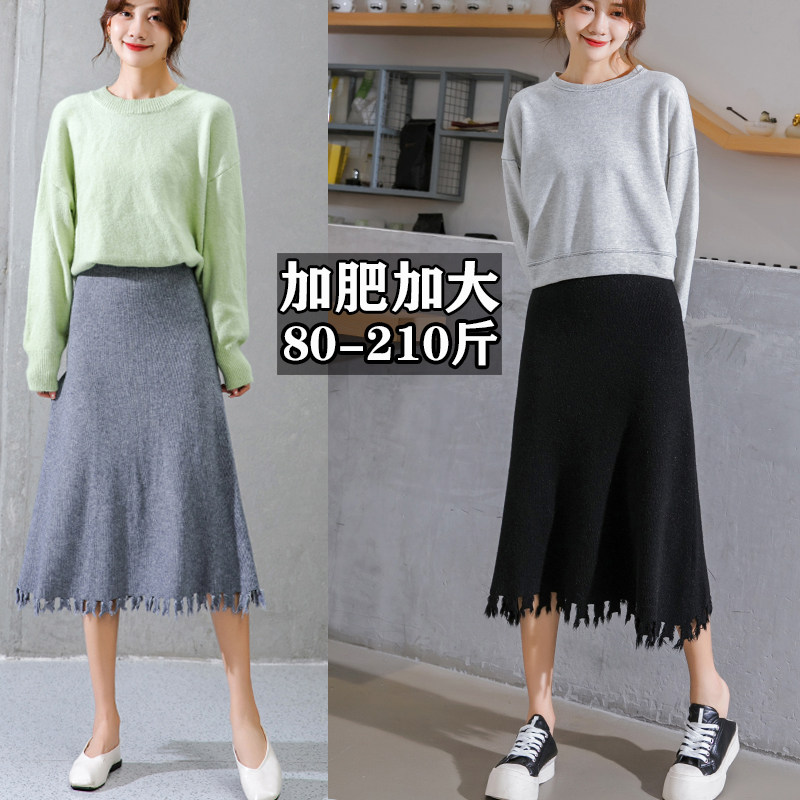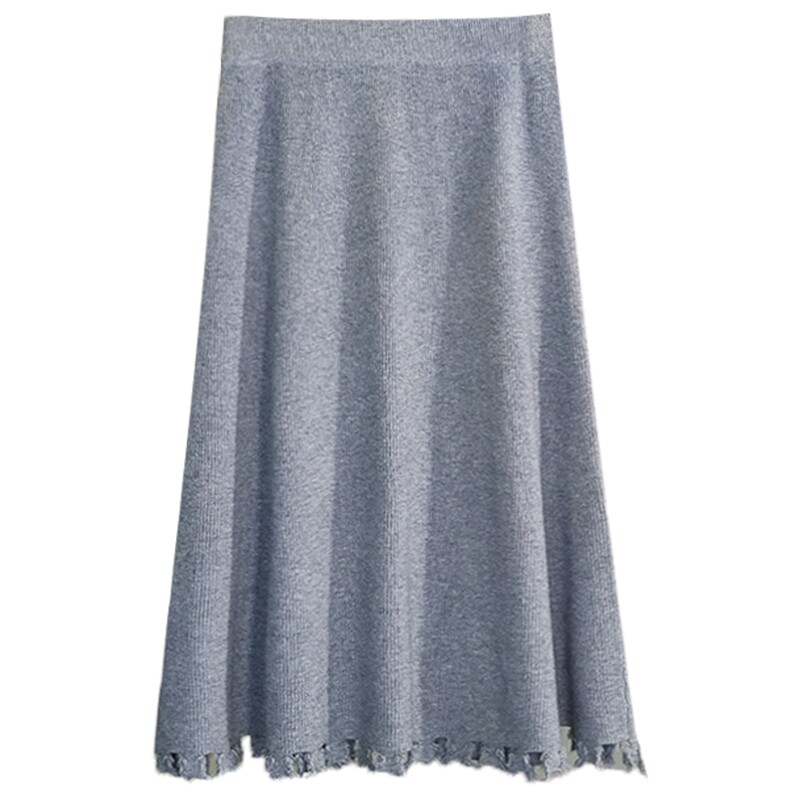 Трикотажная длинная шерстяная демисезонная юбка, большой размер, средней длины, высокая талия, свободный крой, А-силуэт