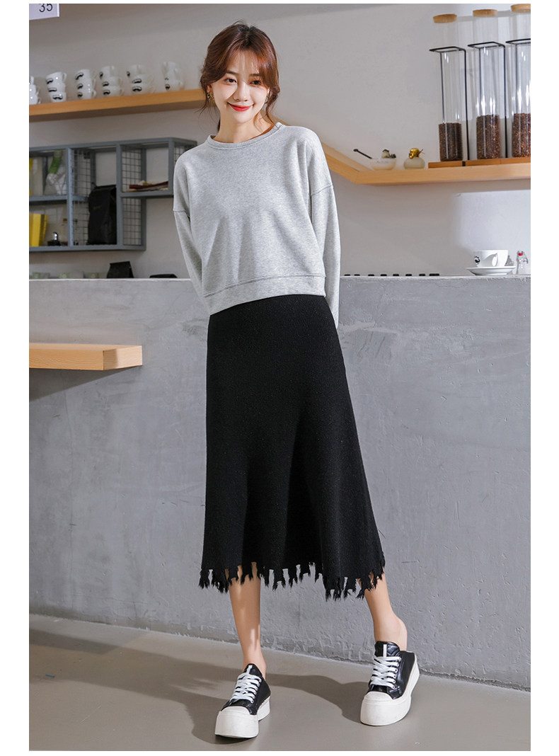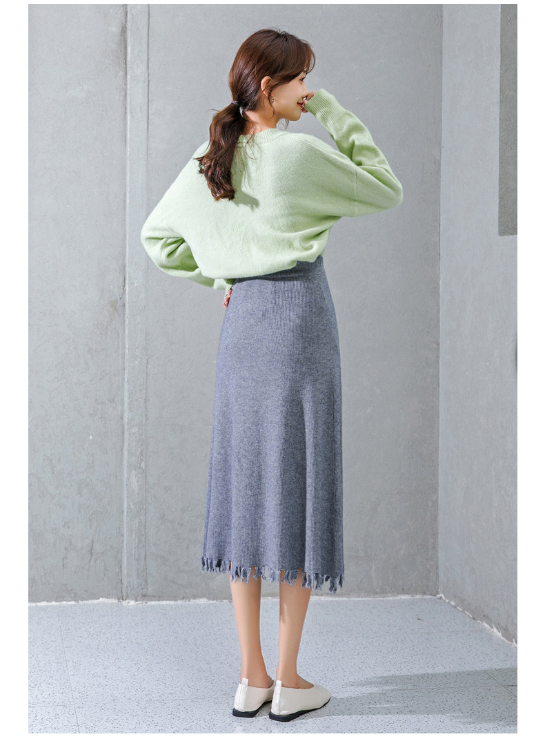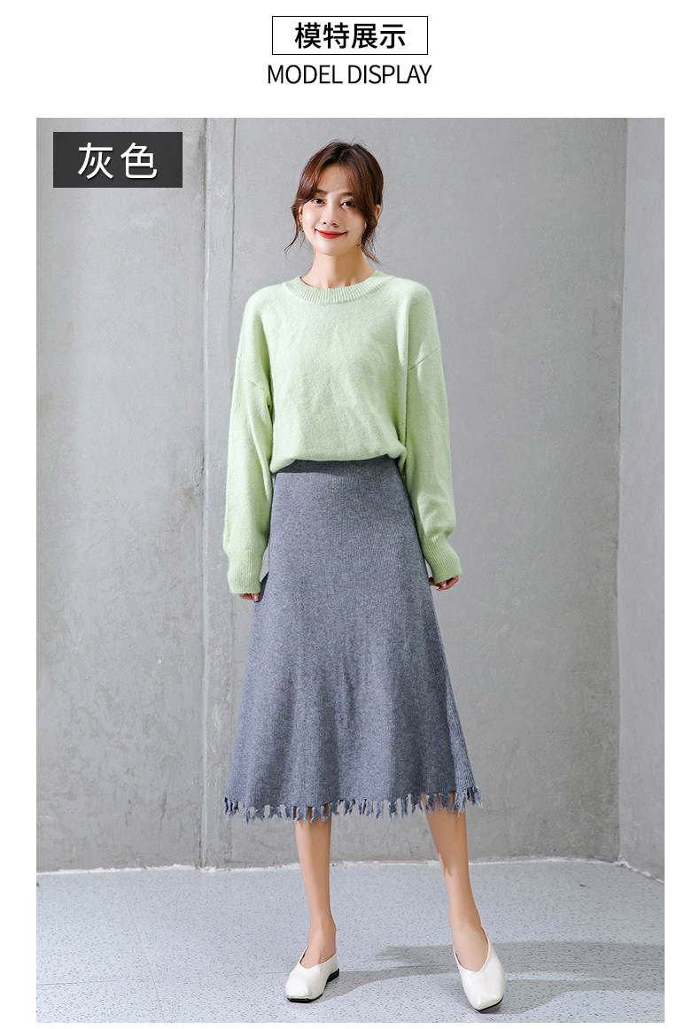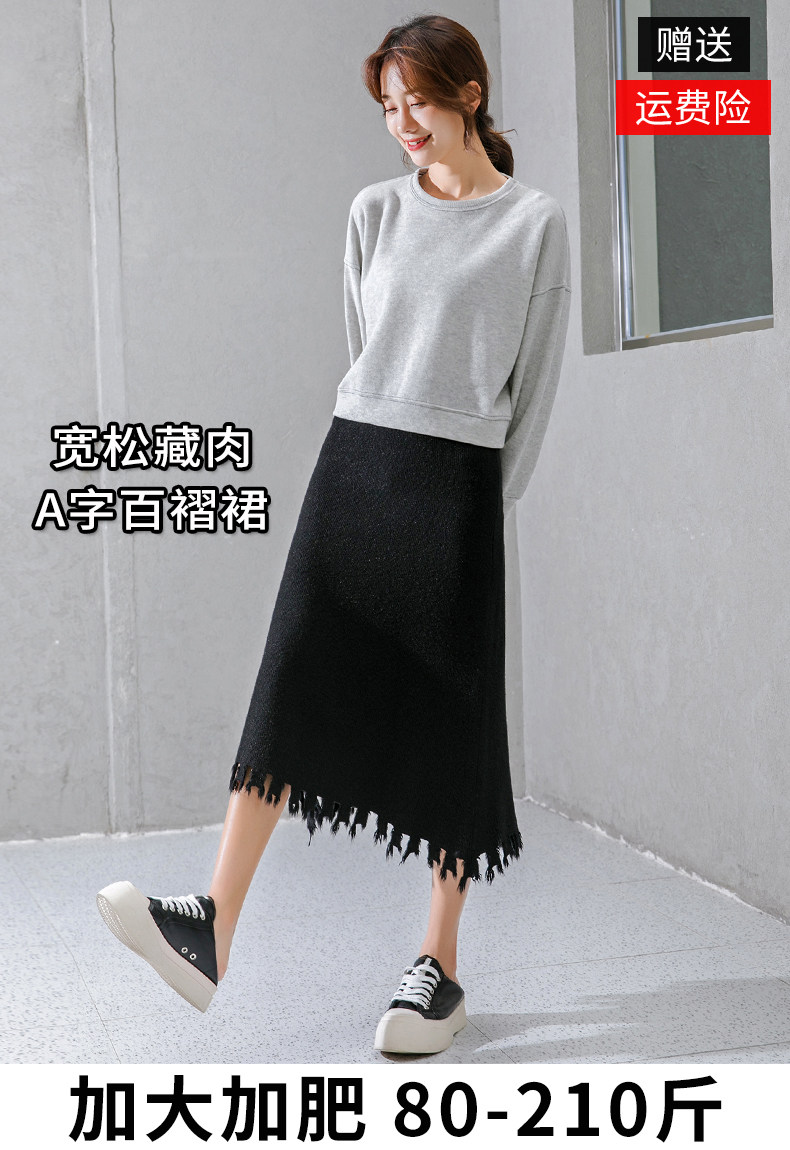Трикотажная длинная шерстяная демисезонная юбка, большой размер, средней длины, высокая талия, свободный крой, А-силуэт