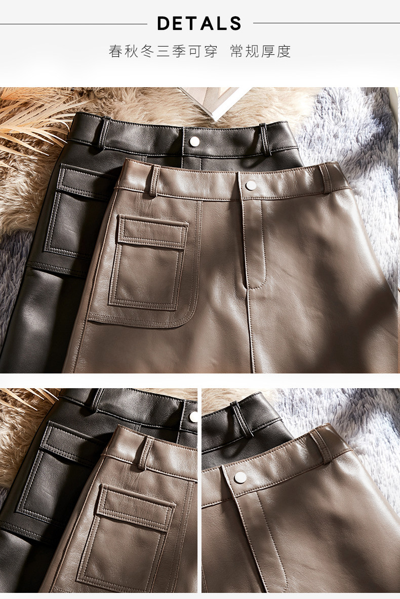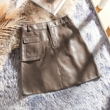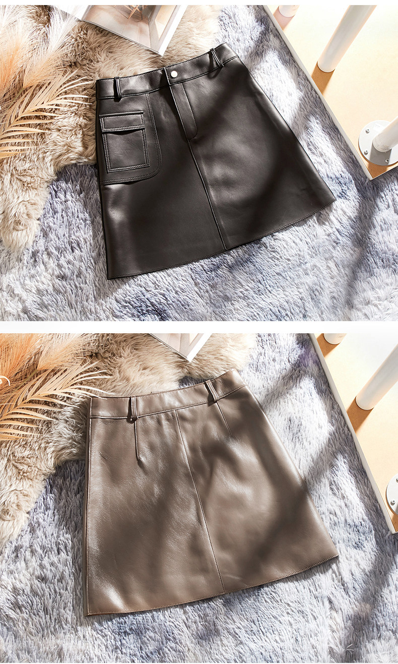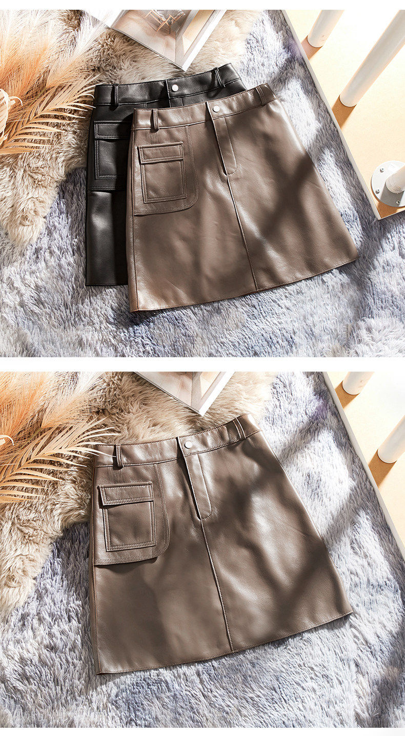 Черная юбка, коллекция 2021, из натуральной кожи, А-силуэт