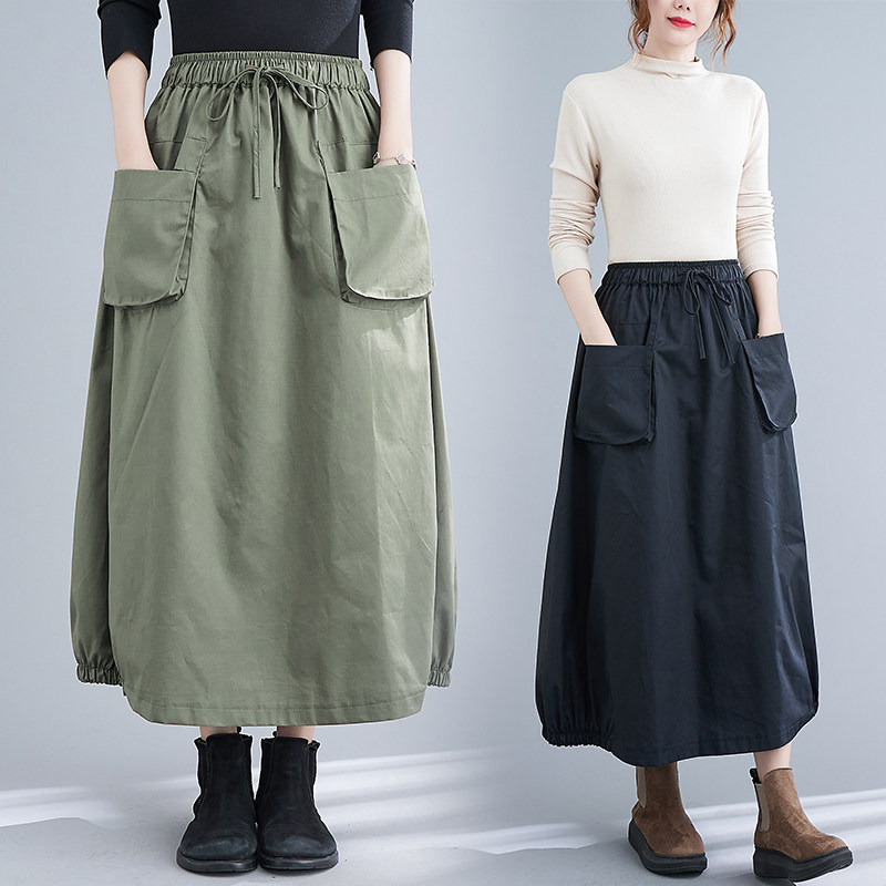 Длинная осенняя цветная длинная юбка, большой размер, в корейском стиле, эластичная талия, А-силуэт
