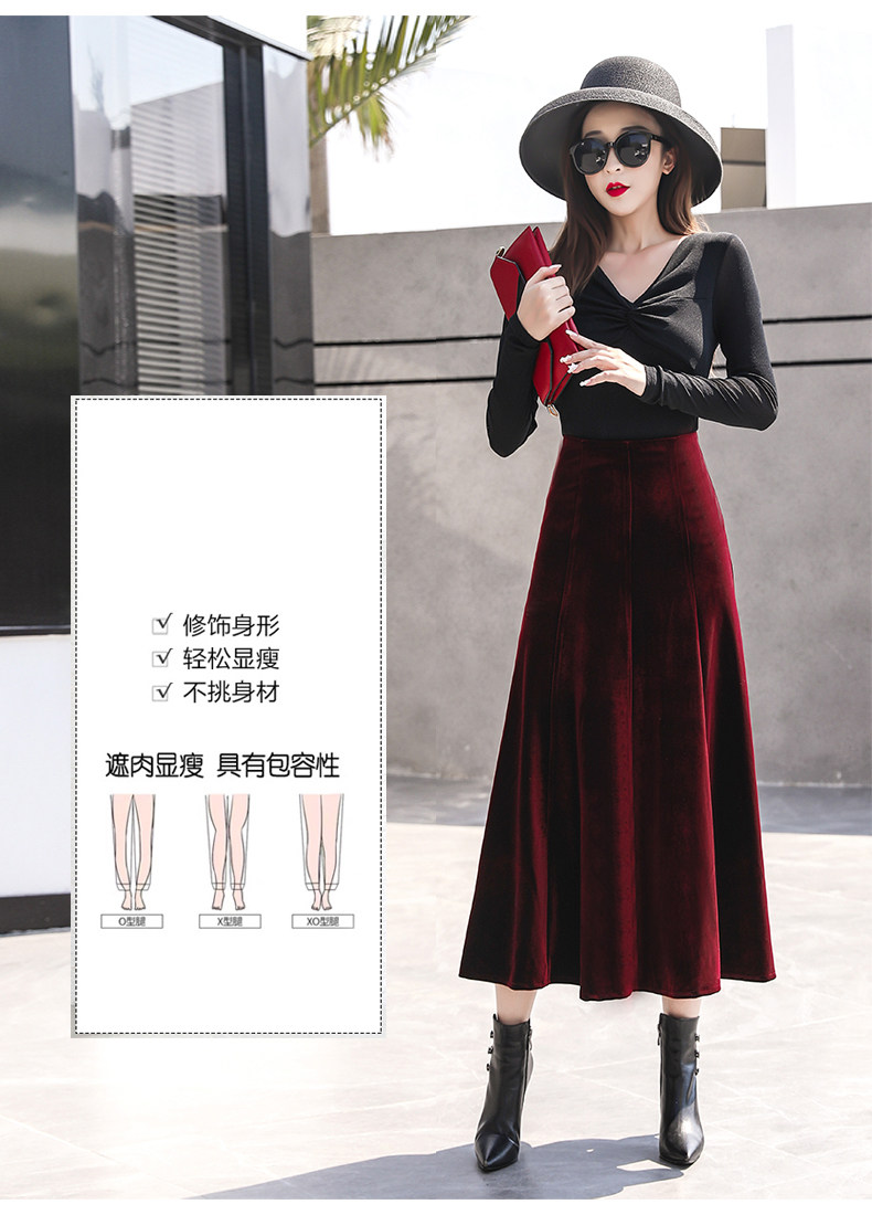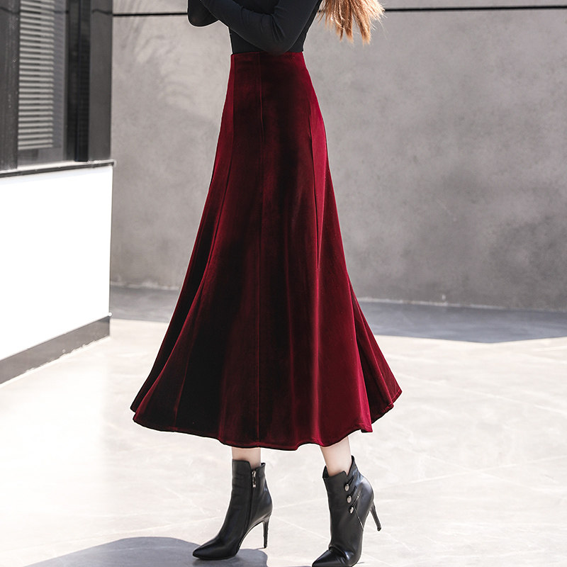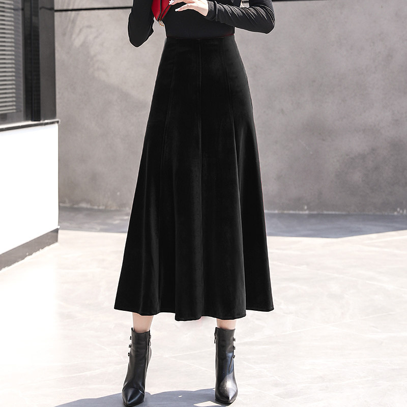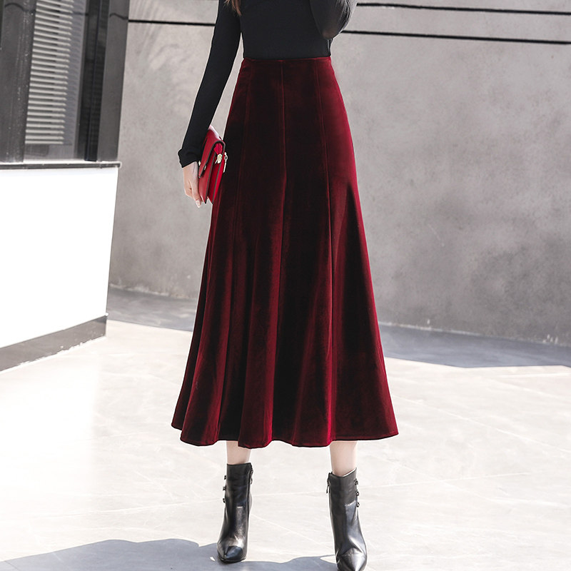 Демисезонная бархатная длинная приталенная юбка, А-силуэт, высокая талия
