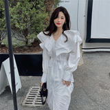 Осеннее платье, модный фонарь, длинная юбка, французский стиль, 2023, яркий броский стиль, с рукавом, длина макси