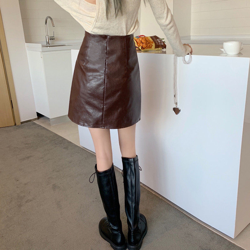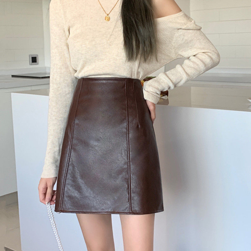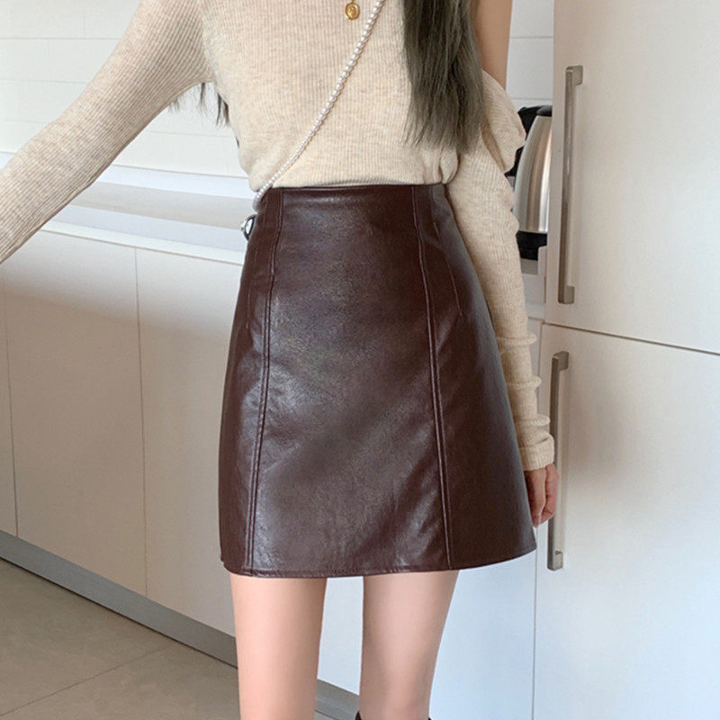 Полиуретановая кофейная юбка, большой размер, А-силуэт