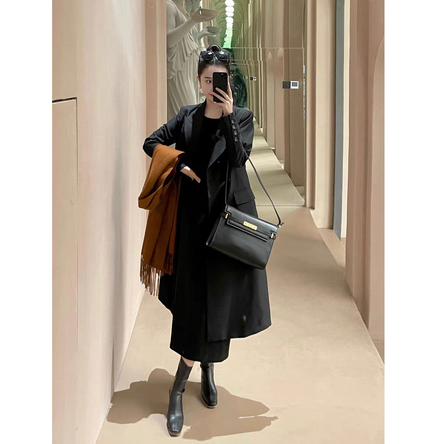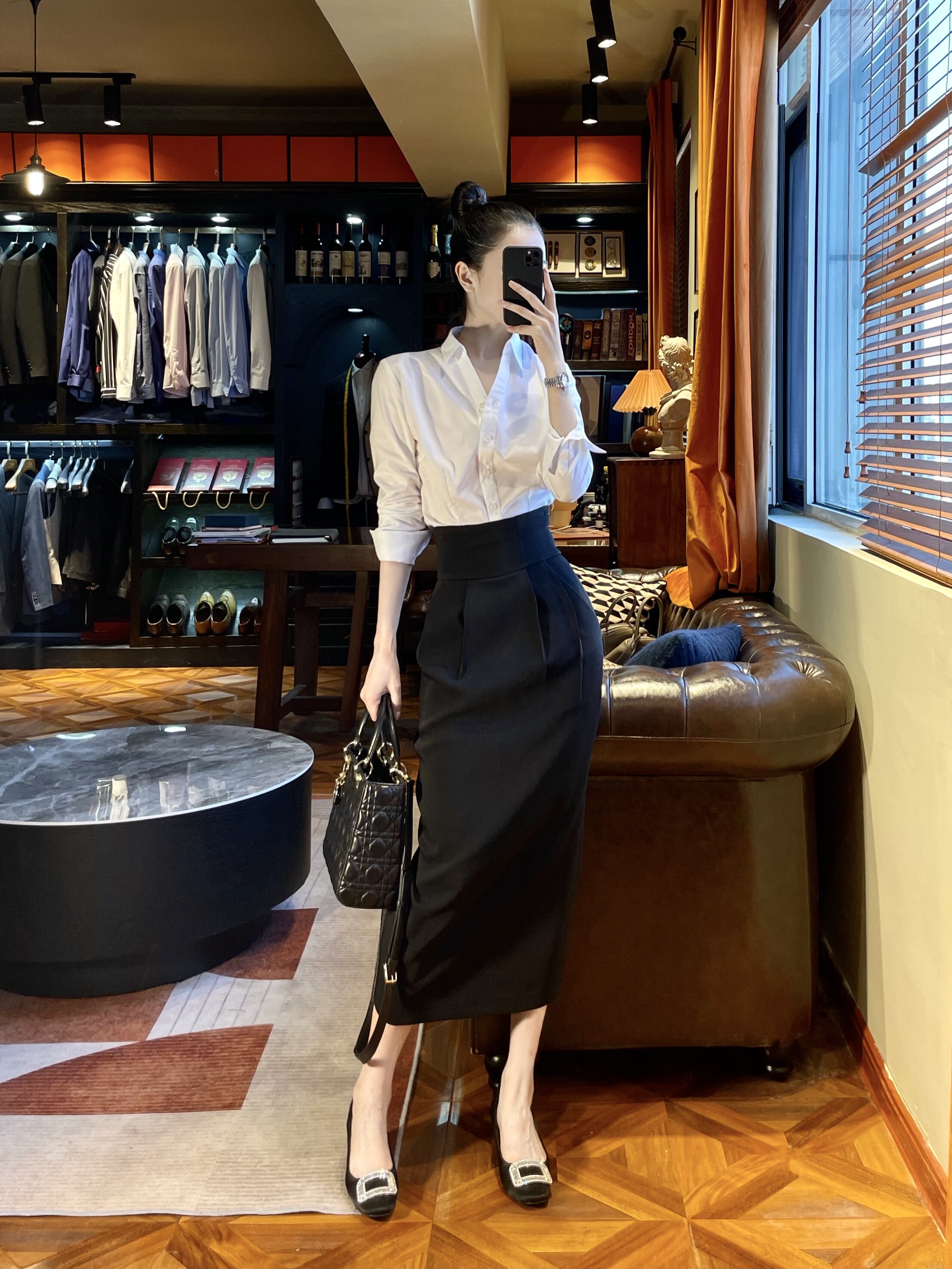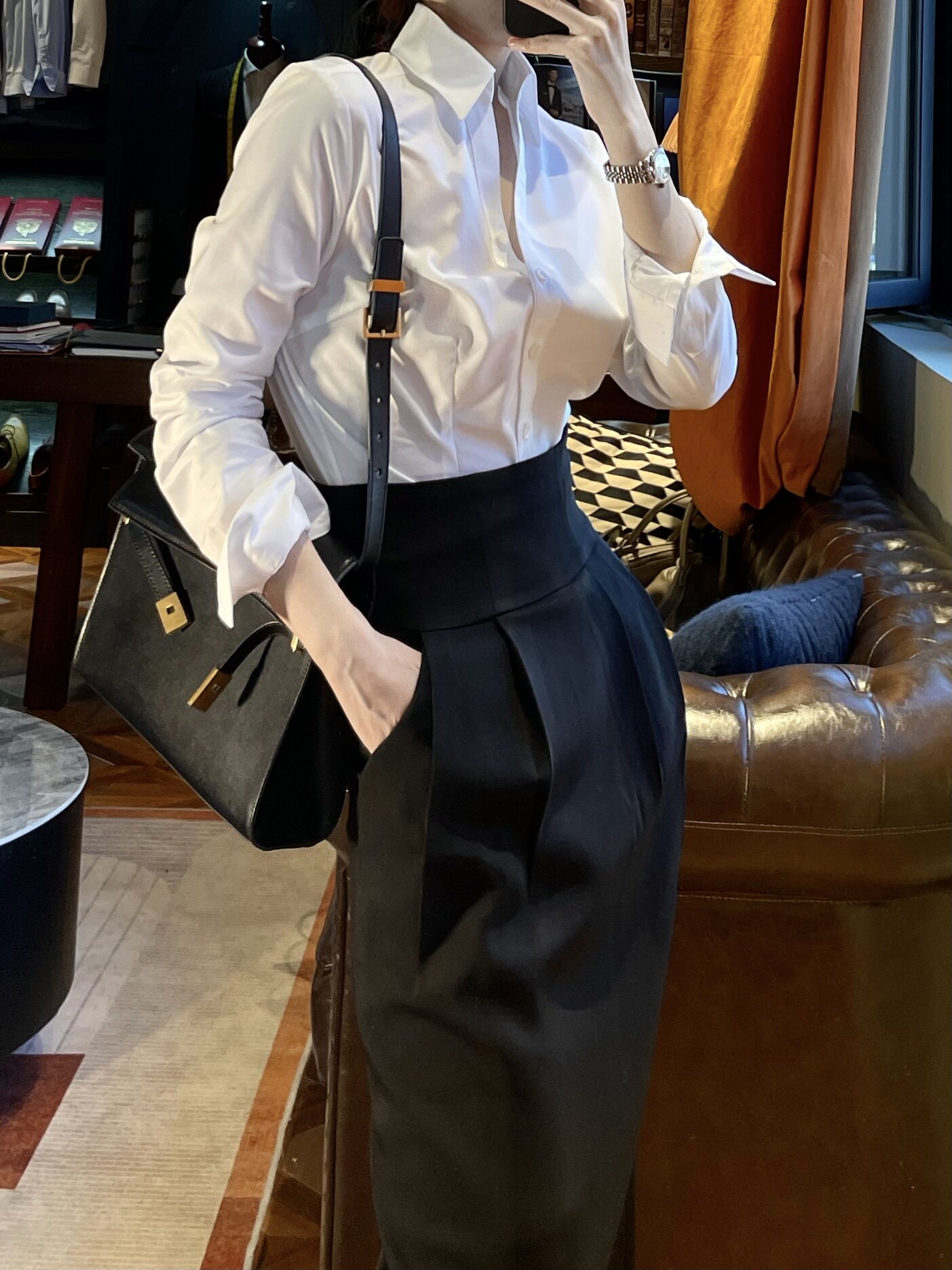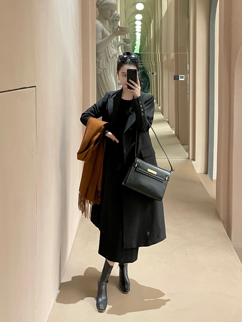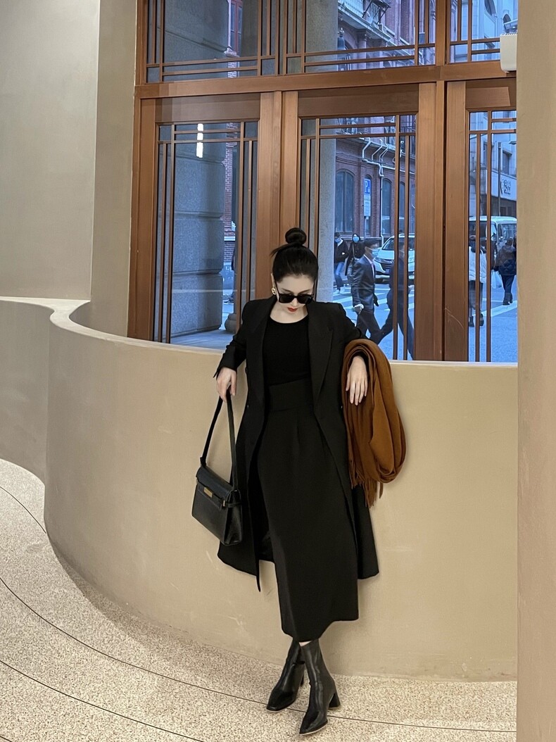 Поясная сумка, юбка, длинный пиджак классического кроя, высокая талия, средней длины