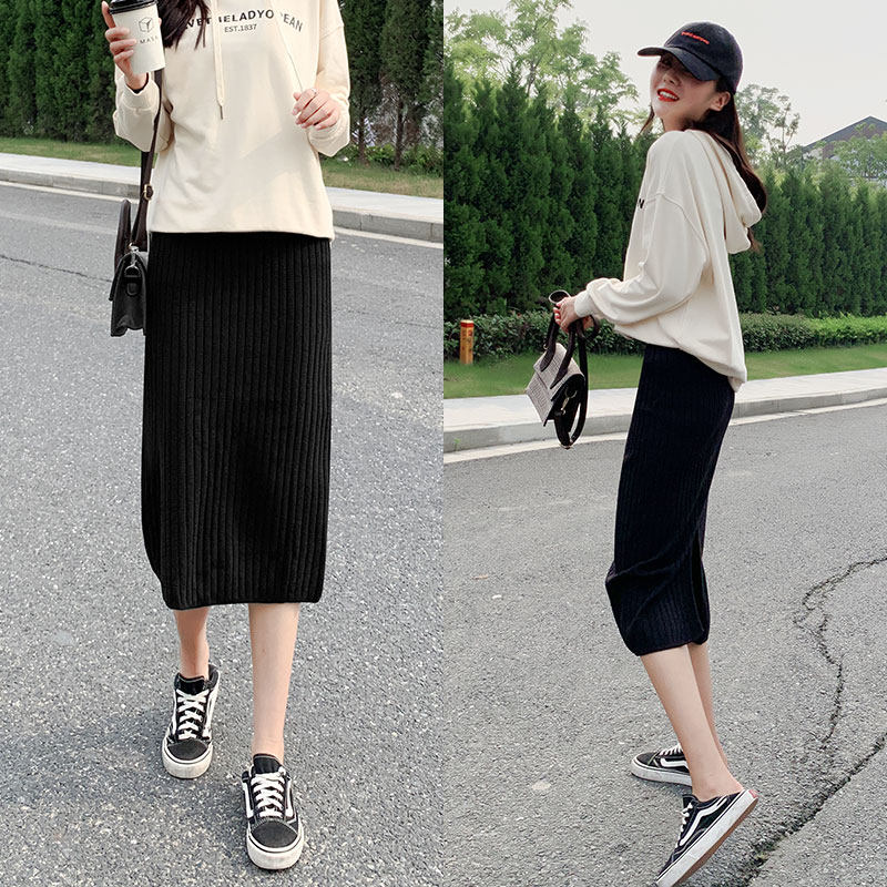 Черная цветная длинная шерстяная трикотажная осенняя демисезонная длинная юбка, коллекция 2021, по фигуре, с акцентом на бедрах