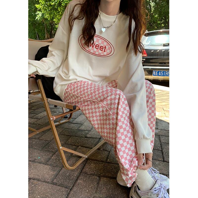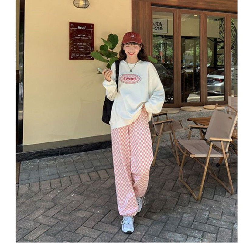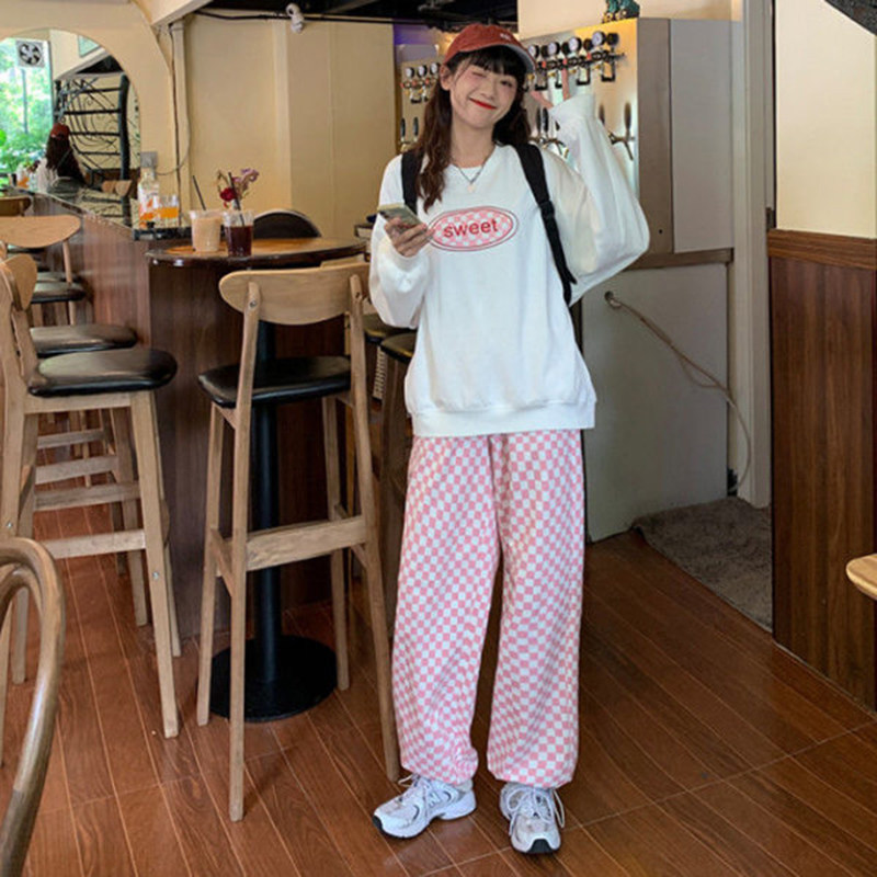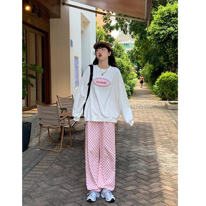 Розовые цветные осенние штаны для отдыха, высокая талия, свободный прямой крой