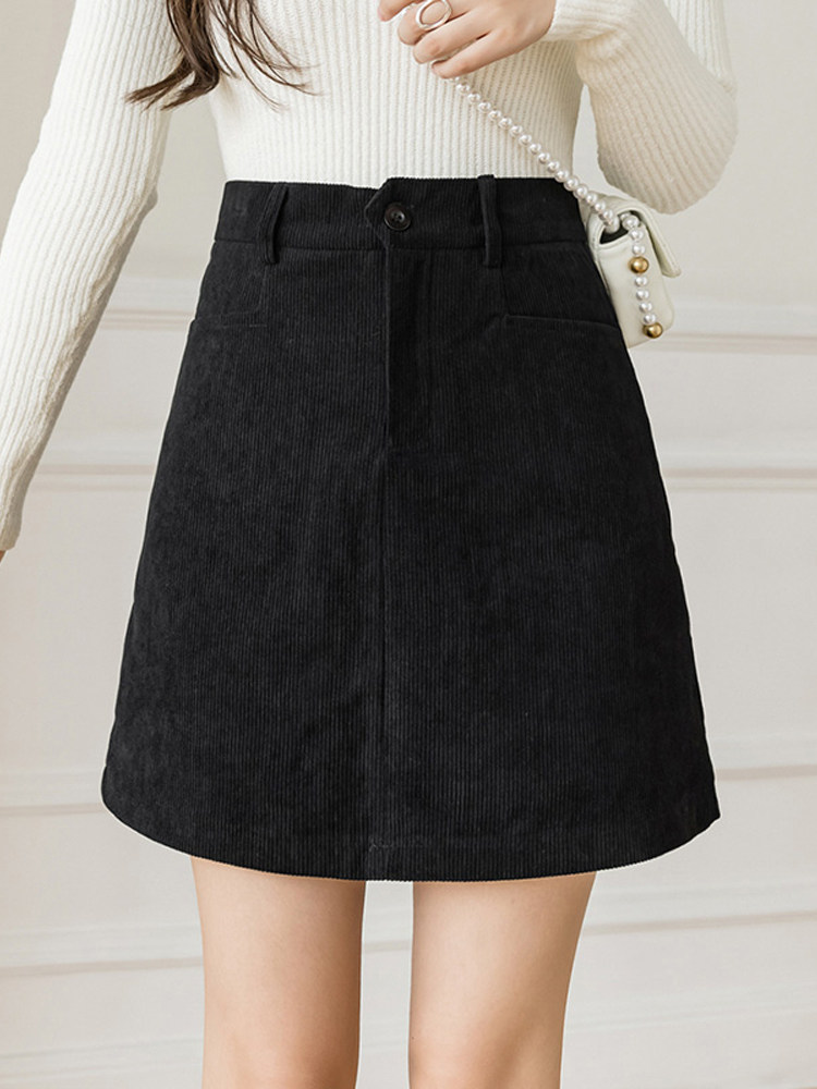 Вельветовая демисезонная юбка, универсальная мини-юбка, коллекция 2022, подходит для подростков, с акцентом на бедрах