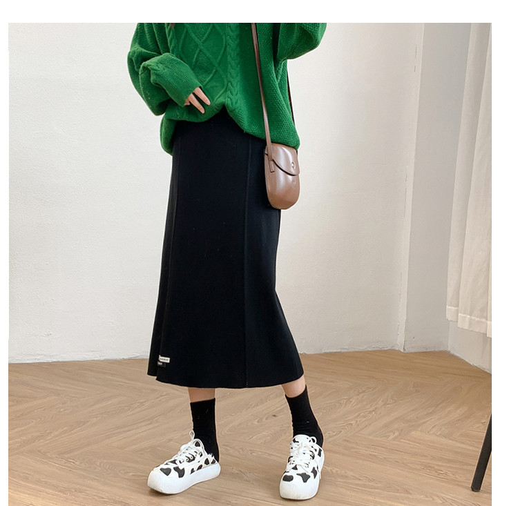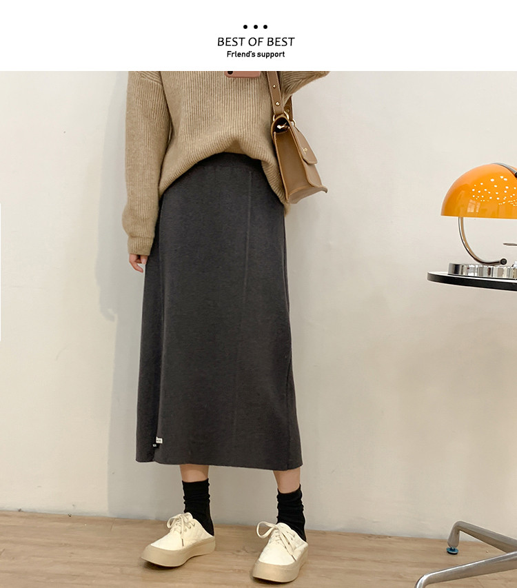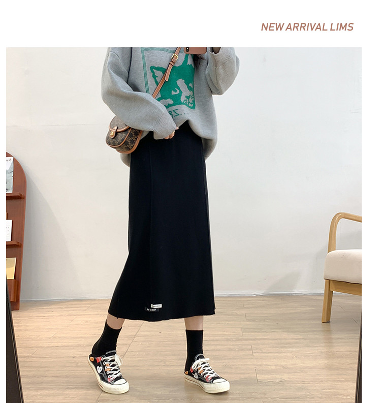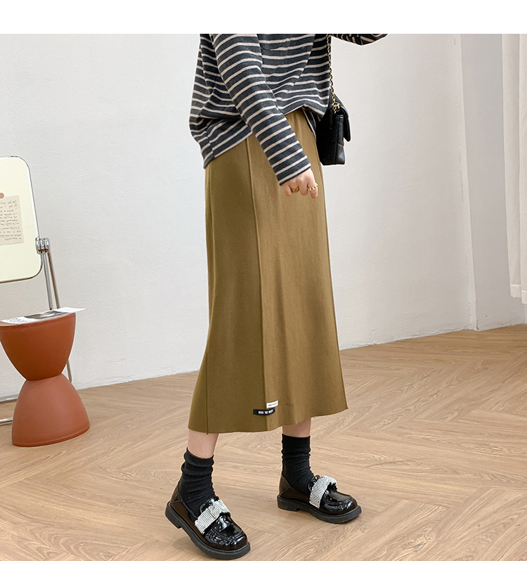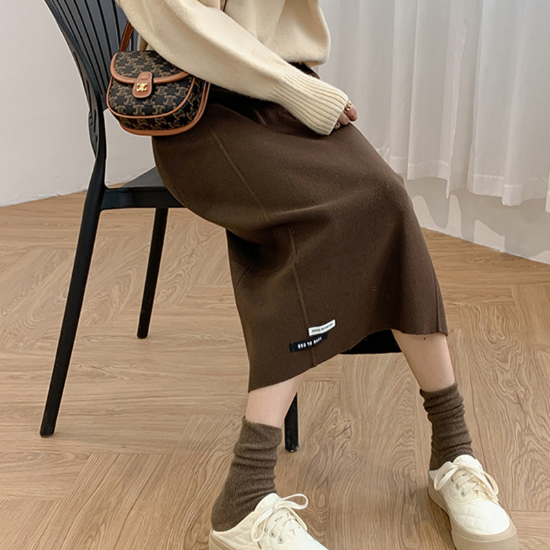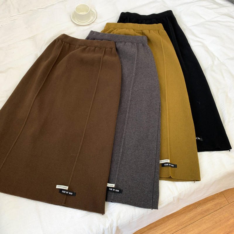 Осенняя приталенная длинная трикотажная юбка, подходит для подростков, свободный прямой крой, высокая талия, средней длины, большой размер